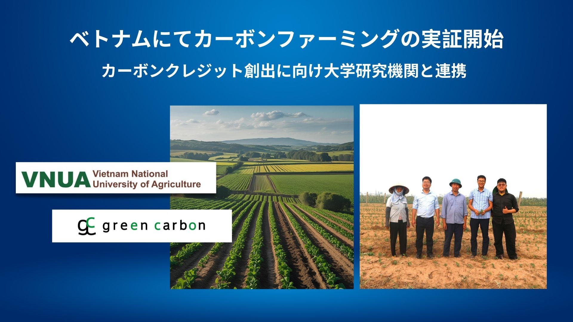 Green Carbon株式会社は、ベトナム国家農業大学およびベトナム農業遺伝学研究所と連携し、カーボンファーミング導入によるカーボンクレジット創出の共同実証を開始