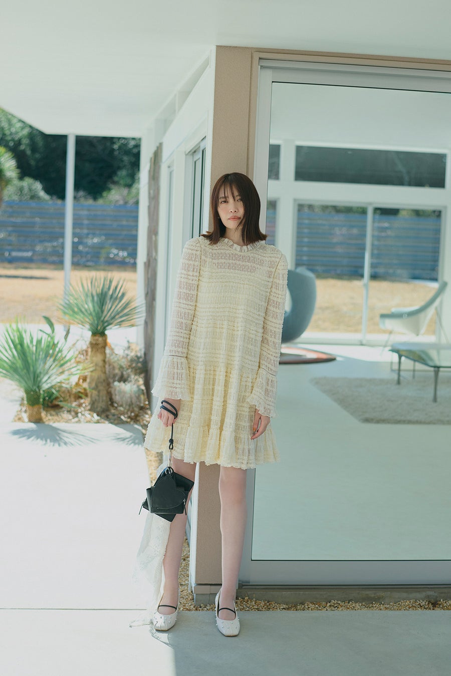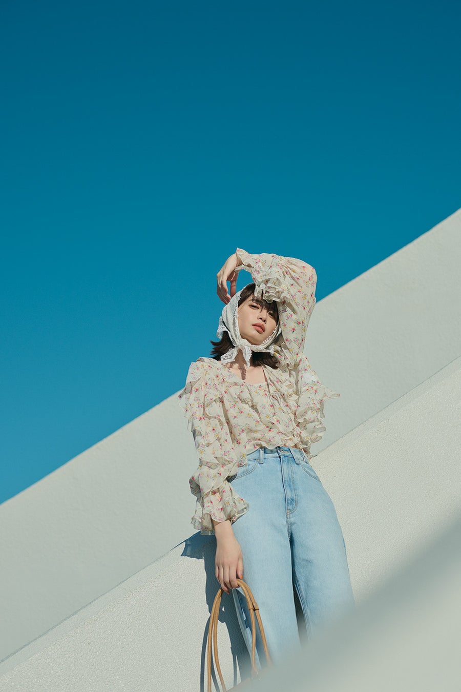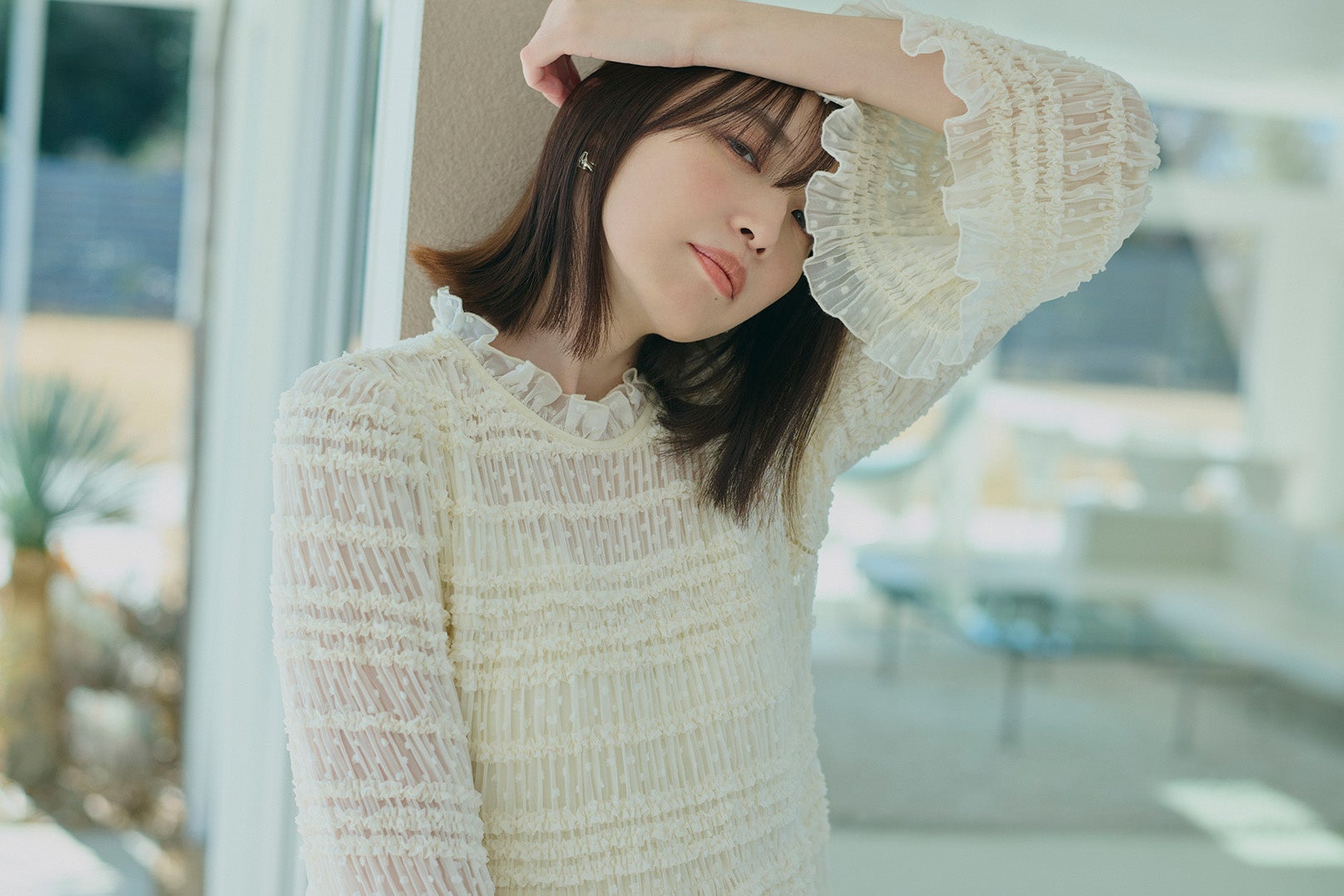 レース、フリル、小花柄。フェミニンなディティールでほんのり甘さをプラス。