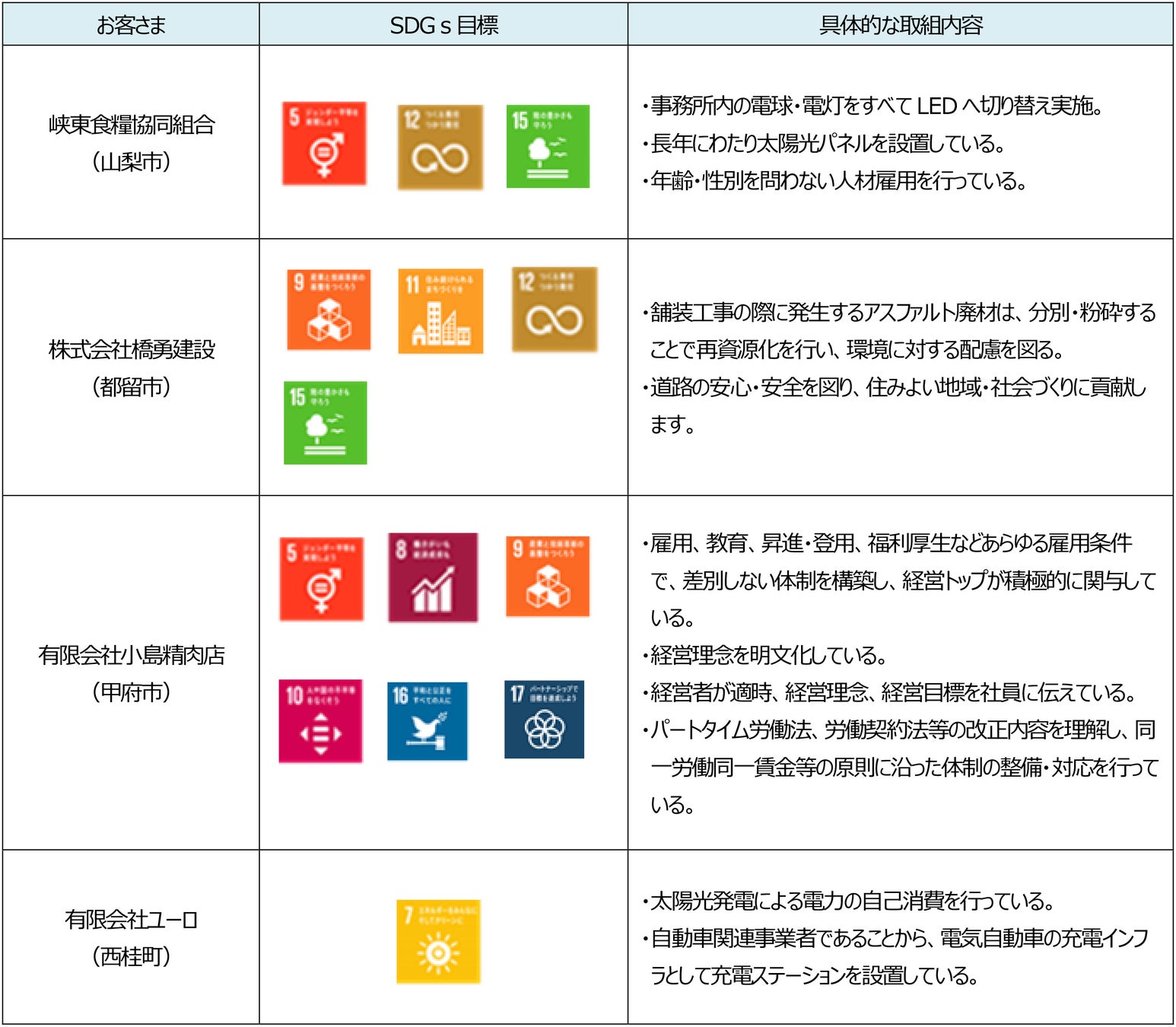株式会社山梨中央銀行(頭取 古屋 賀章)は、SDGsの目標達成に資する取組みを積極的に行っているお客さまにご利用いただける「山梨中銀SDGs応援ローン」を、2024年10月中に9件実行しました。