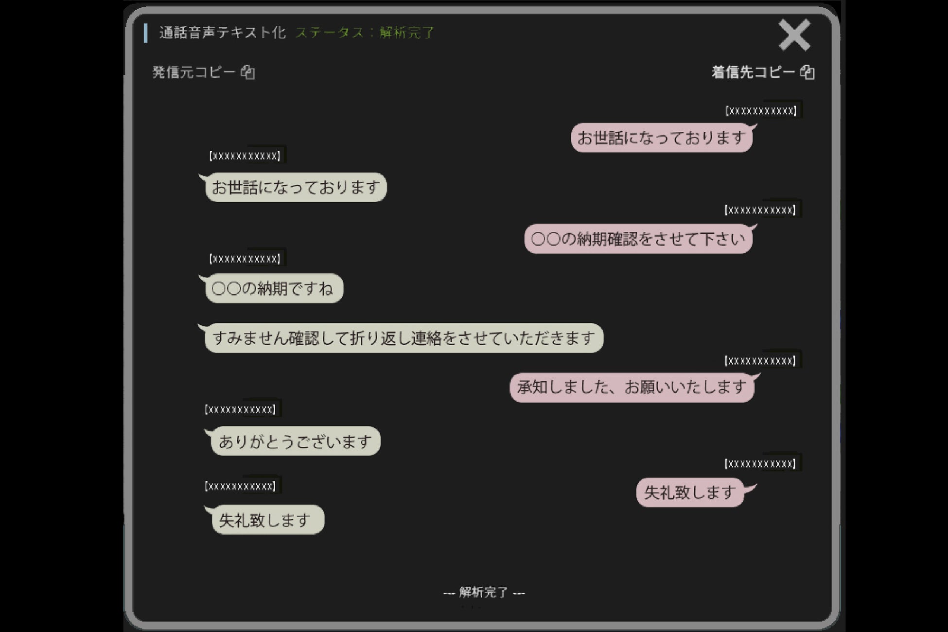 これにより、電話による顧客対応の引き継ぎや共有が一層スムーズになり、コールセンターやインサイドセールスなど、電話対応の多い企業様においては、通話内容を記録する作業工数が削減でき、過去の対応履歴も要点のみを素早く確認できるようになります。