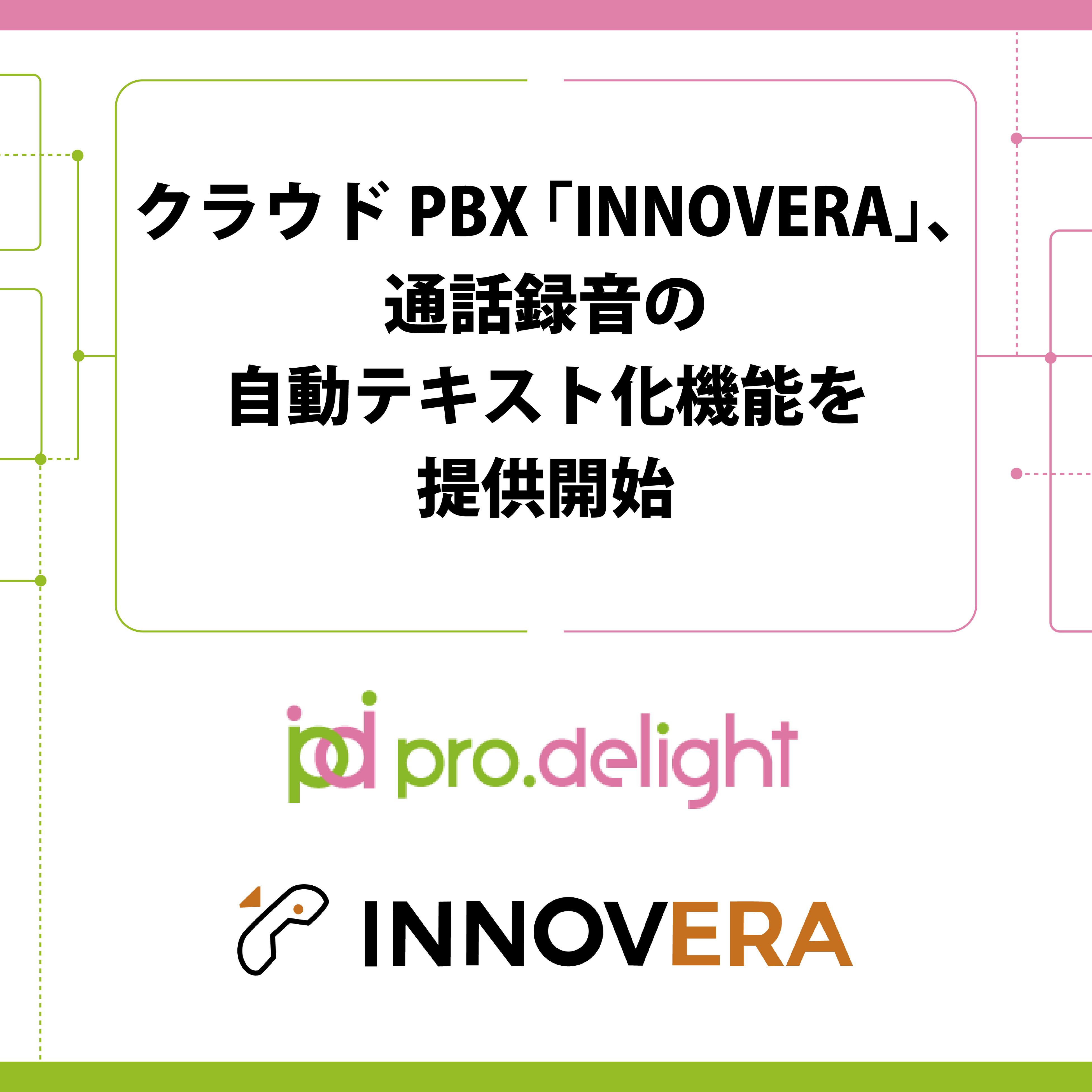 電話のDXを推進する株式会社プロディライト(大阪市中央区:代表取締役社長 小南 秀光、証券コード:5580、以下プロディライト)は、クラウドPBX「INNOVERA」のオプションサービス「Call to Text」においてアップデートを行い、通話録音の自動文字起こし機能を新たに提供開始いたしました。