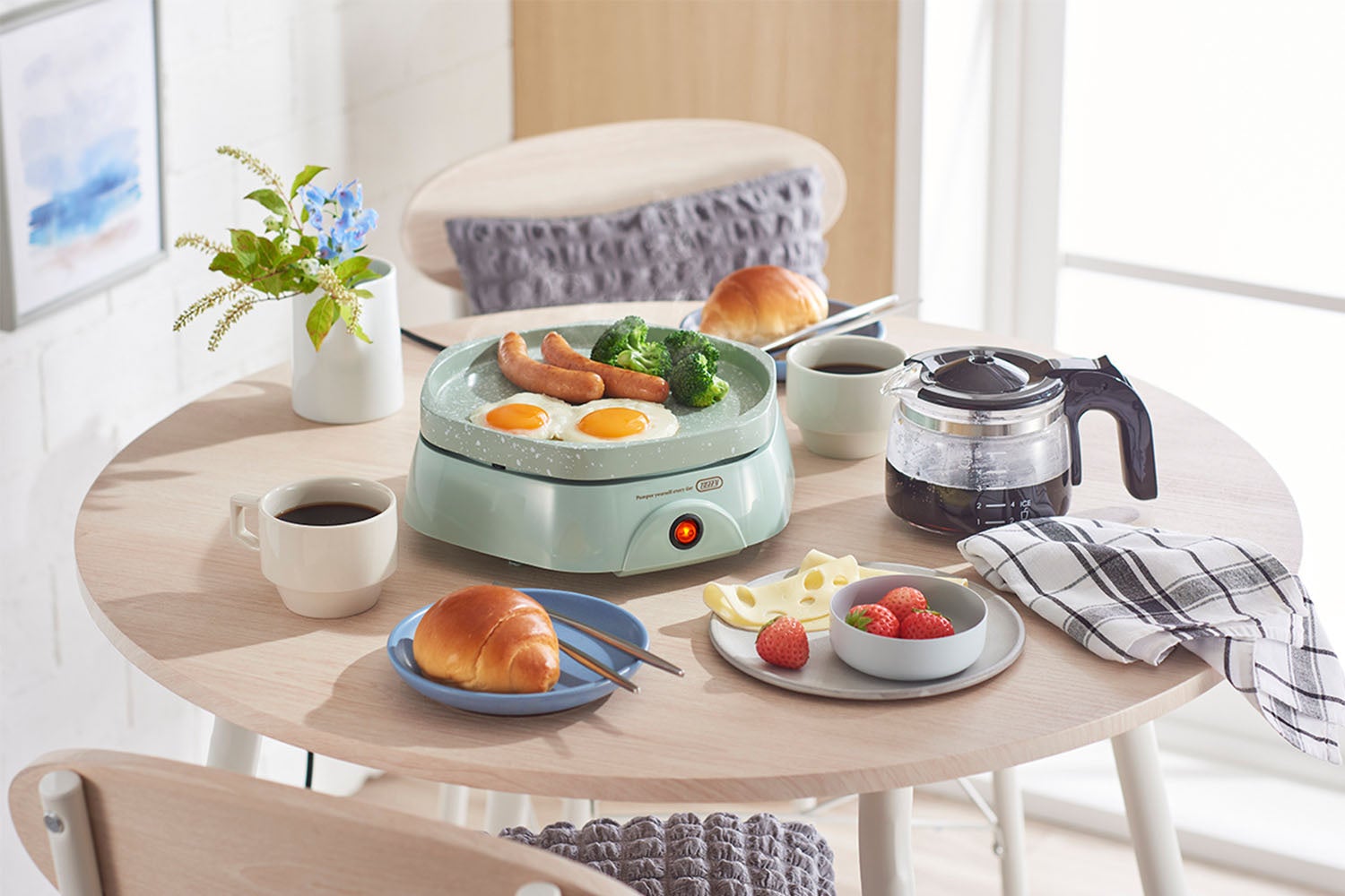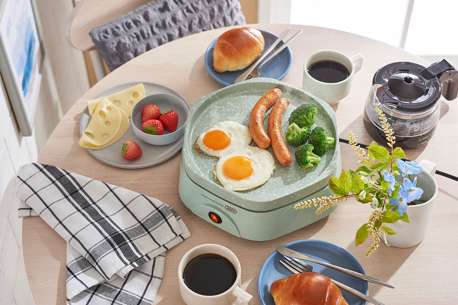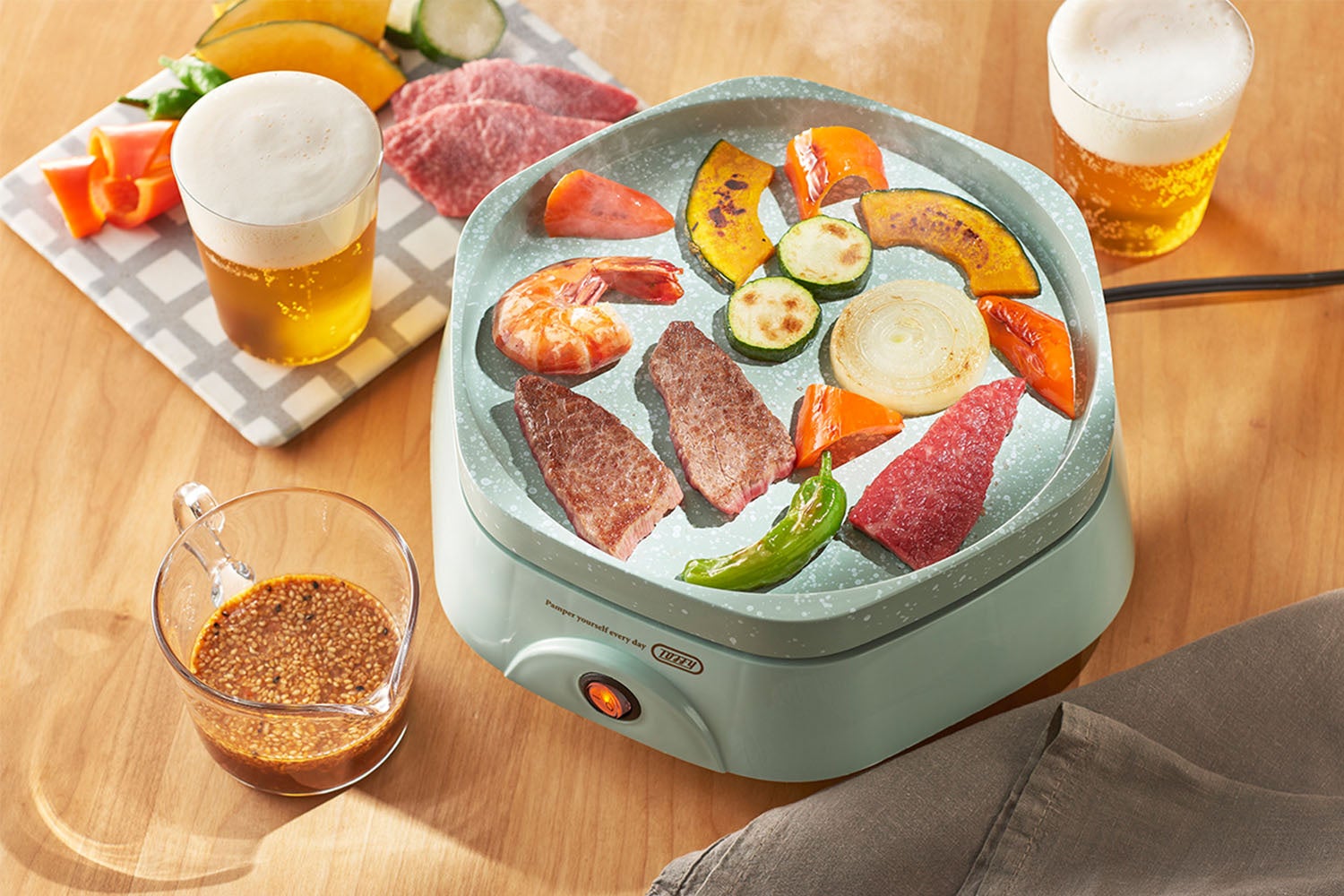 かわいい小さめサイズだから、テーブルの上でも場所をとらず、初めてのホットプレートにも最適です。気軽におうち焼肉が楽しめたり、朝食をテーブル調理したりと、友人や家族と楽しく食卓を囲むことができます。