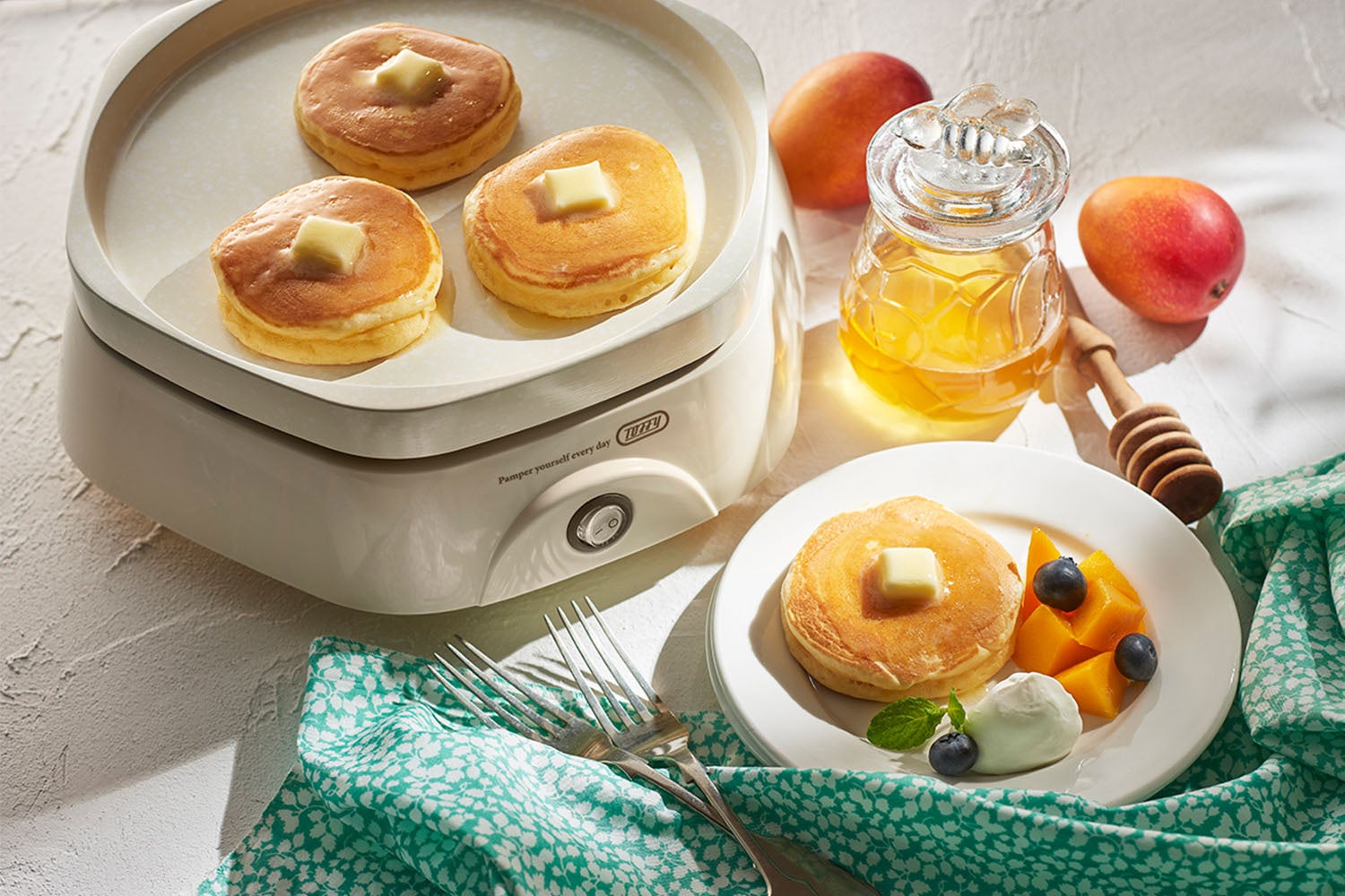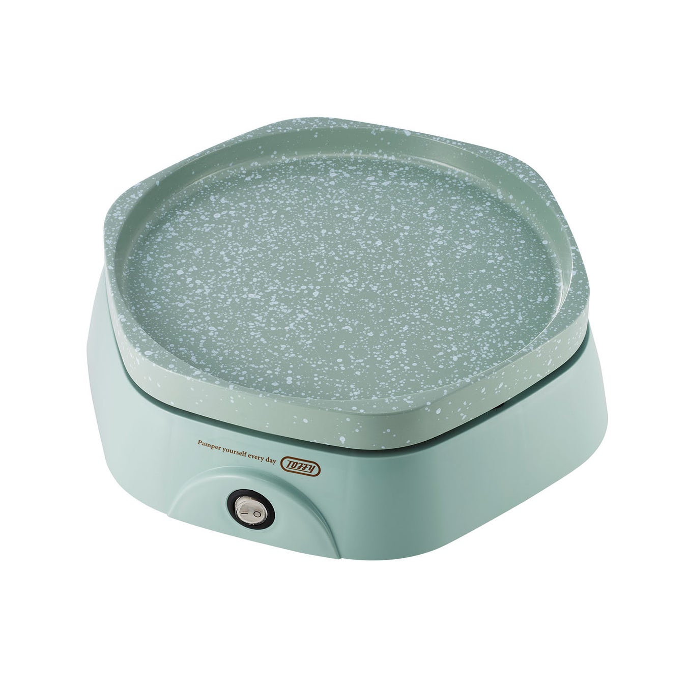 Toffyカラフルリトルプレートは、マーブル調の模様がかわいい「ピンドットセラミックコート」採用で、焦げ付きにくく、お手入れが簡単なホットプレートです。少人数にぴったりなコンパクトサイズで、そのまま食卓に並べても場所をとらず、初めてのホットプレートにも最適です。スイッチをONにするだけで簡単に調理ができ、特別な日の焼肉ディナーから、普段使いの朝食、お子様のおやつまで、幅広く活躍します。