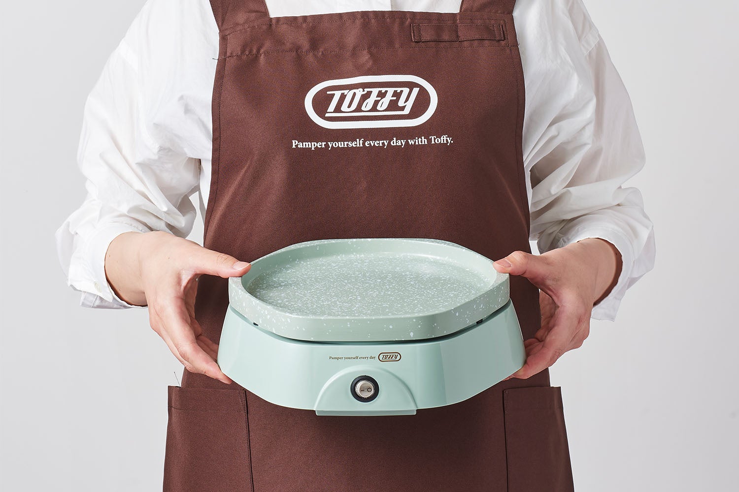 カラーはToffyシリーズで人気の「ペールアクア」「ミルキーホワイト」の2色展開です。Toffyならではのダスティーカラーとレトロなデザインで、調理だけでなく、テーブルウェアとしても毎日の食卓を彩ります。