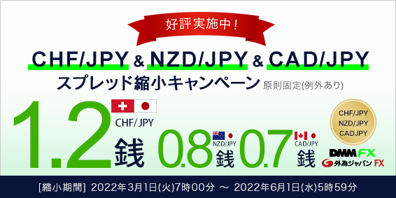 【DMM.com証券】CHF/JPY、NZD/JPY、CAD/JPYにてスプレッド縮小キャンペーンを開催!