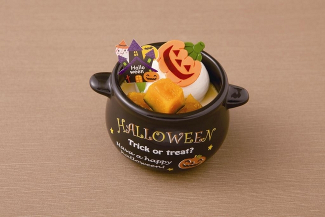 カボチャの風味がしっかりと感じられる、口どけのよいプリンです。生クリームをたっぷり絞り、カボチャのコンポートも贅沢に乗せています。ハロウィーン仕様のカップに入っており見た目も愉しんでいただけます。