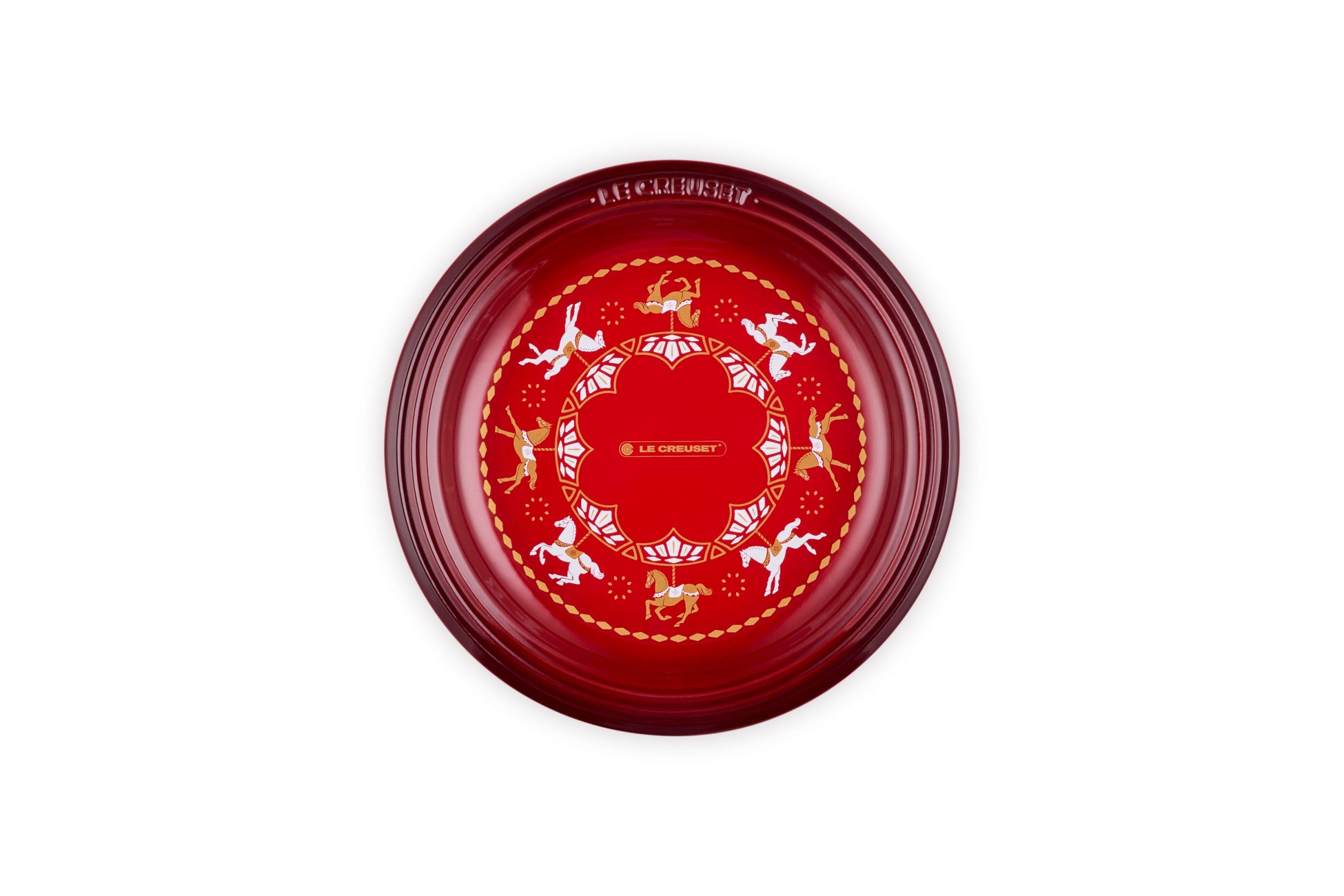 人気のお皿「レジェ・プレート」に、華やかなカルーセルのイラストをあしらいました。直径19cmの使い勝手の良いサイズで、軽食やデザート、取り皿にもお使いいただけます。チェリーレッドのきれいなグラデーションは、お料理やお菓子が美しく映えます。お祝いの席にはもちろん、普段使いにもおすすめです。