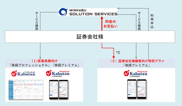「株探プロフェッショナル」は、金融プロフェッショナル向けマーケット情報サービスとミンカブ独自の情報コンテンツを有しながら、顧客プロファイルをベースにAIを活用した提案を実現します。また「株探プレミアム」は、個人投資家から機関投資家までご利用いただいている国内最大級の株式情報メディア「株探」の有料プランです。今般、この2つのサービスをバンドル化したB2Bサービスを展開することといたしました。