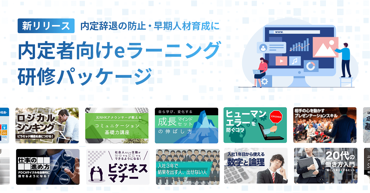 この度、新卒内定者を対象としたeラーニング「内定者向けeラーニング研修パッケージ」をリリースしました。