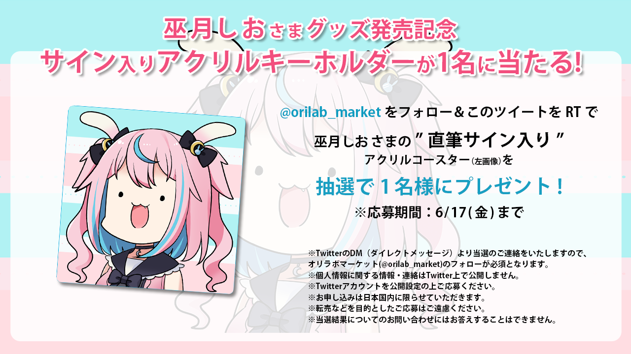 Vtuber『巫月しお』と『オリラボマーケット』コラボグッズが発売開始!!