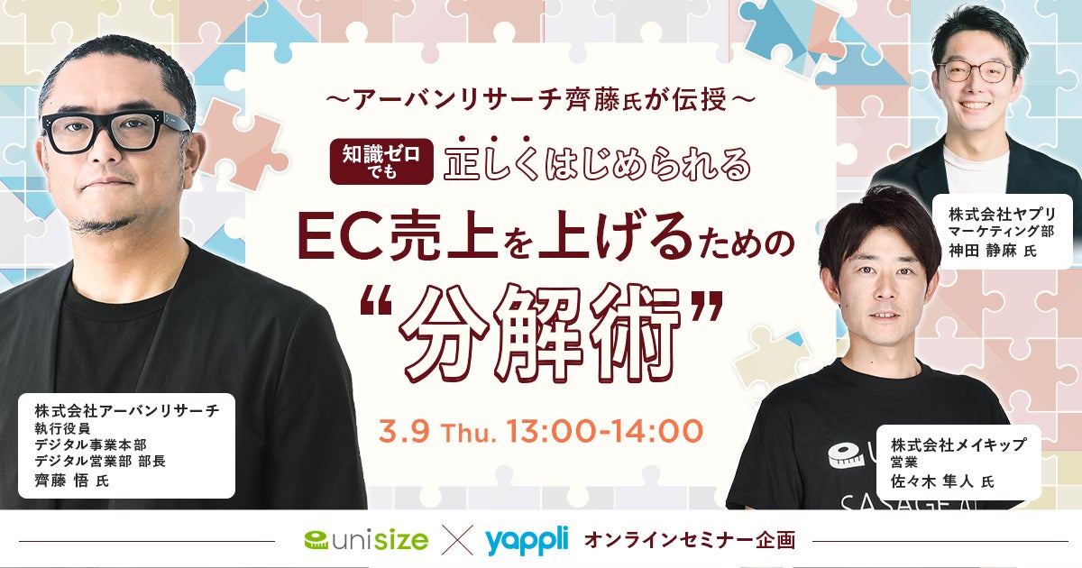 - 3月9日(木)『〜アーバンリサーチ齊藤氏が伝授〜知識ゼロでも正しくはじめられるEC売上を上げるための”分解術”』オンラインセミナー開催