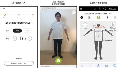 unisize(https://cl.unisize.makip.co.jp/)はネットで洋服を買うときに、より身体に合ったサイズを推奨するレコメンドエンジンです。最短1分の簡単なアンケートに答えるだけで、メジャーで測ることなく自分に合ったおすすめのサイズを確認したり、機械学習アルゴリズム(AI)を用い、お手持ちのスマートフォン端末で撮影した正面と側面の全身写真から、腕の長さや肩幅などの体型を採寸して、サイズを確認することができます。従来のような専門知識やメジャーを用いて採寸するような手間をかけずとも、自分に合うおすすめサイズを確認できます。また、過去に買った洋服と比較する購入履歴比較機能なども併設し、ユーザーの持つ情報に合わせてサイズを確認することができます(※特許取得)。