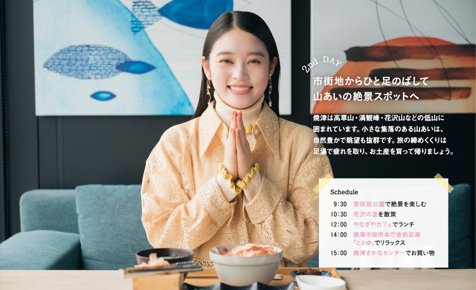 2025年度後期NHK連続テレビ小説『ばけばけ』でヒロインを務める髙石あかりさん。お芝居に真摯に情熱を注ぎ続ける髙石さんにとって、旅は次の作品と向き合うための大切な時間だと言います。初めて訪れた焼津市は「お魚がおいしい港町というイメージでした。(中略)焼津は海だけではなく山の景色もきれい」と、新しい発見があったそうです。また、撮影が終わったタイミングでご褒美感覚で旅するというプライベートも教えてくれました。