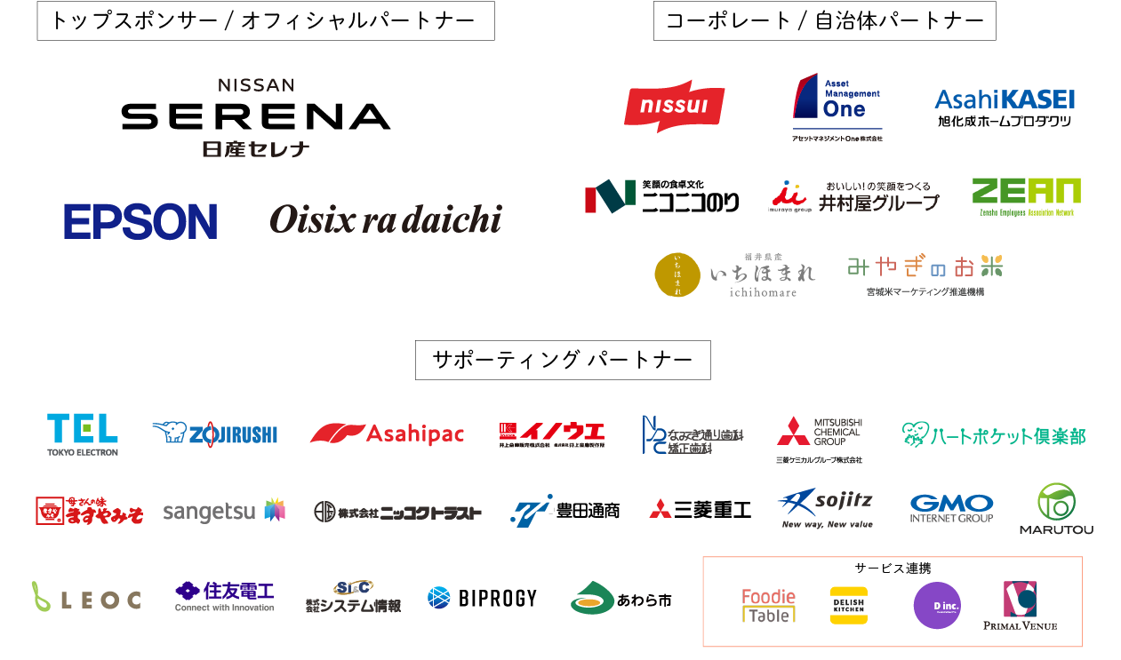 以下の協賛企業・団体は、7月19日時点での一覧となります。協賛企業は今後追加となる可能性がございます。