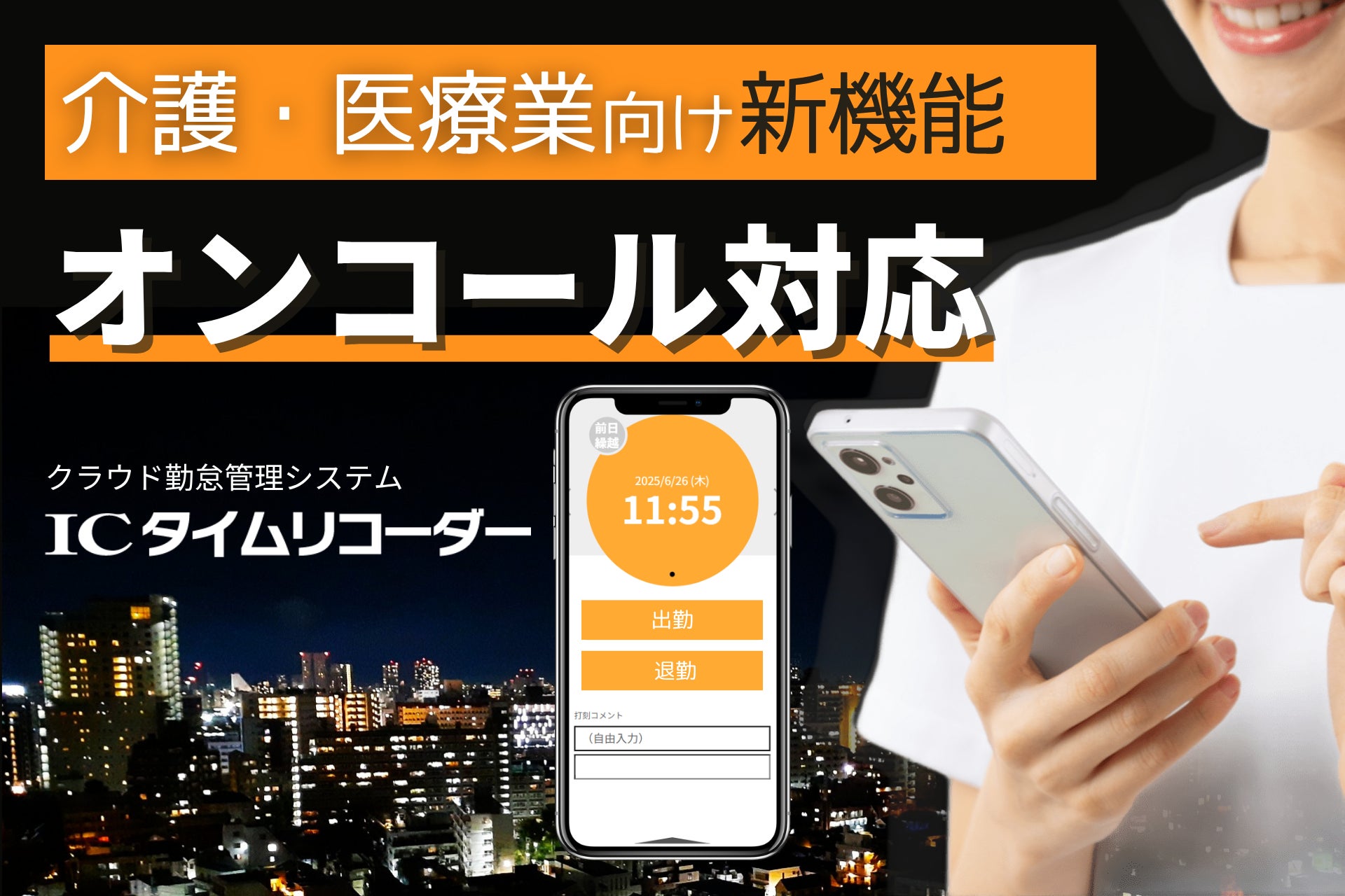 オンコール対応で介護・医療現場の「夜間呼び出し」管理を支援。新機能「分割勤務」なら従業員の打刻・管理の負担を削減:ICタイムリコーダー