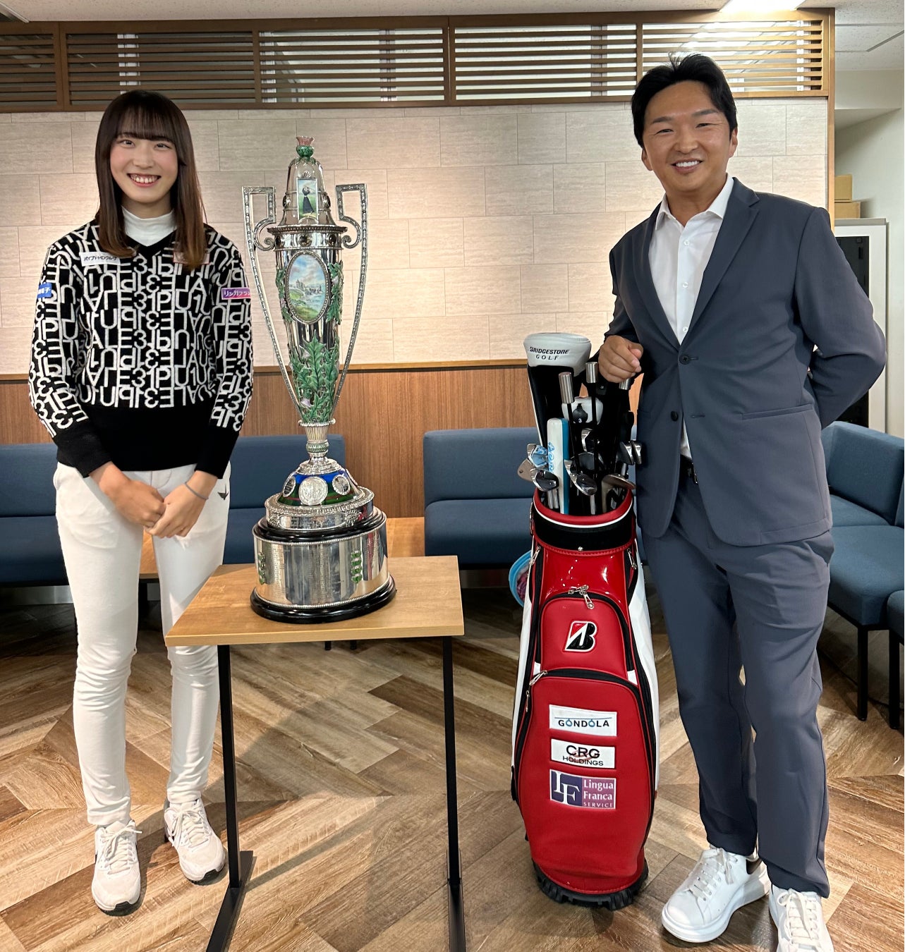 2022年8月の「全米女子アマチュアゴルフ選手権」優勝後、馬場咲希選手と写真撮影する進藤大典氏