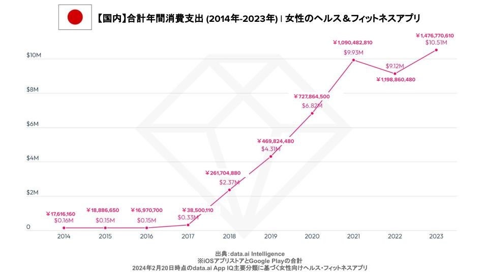 日本では、このカテゴリの消費者支出額が過去7年間で急増し、2023年の消費者支出額は2016年の87倍となる約15億円に上るなど、大きな成長が見られるカテゴリとなっています。