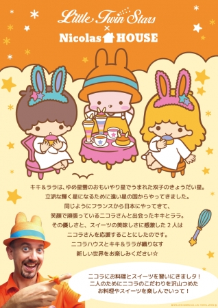 3月7日(月)から、うさぎシュークリームで人気のニコラハウスとサンリオキャラクターのリトルツインスターズのコラボ開催!料理研究家ニコラシャールがキキ&ララをモチーフにしたスイーツプレートが登場!!