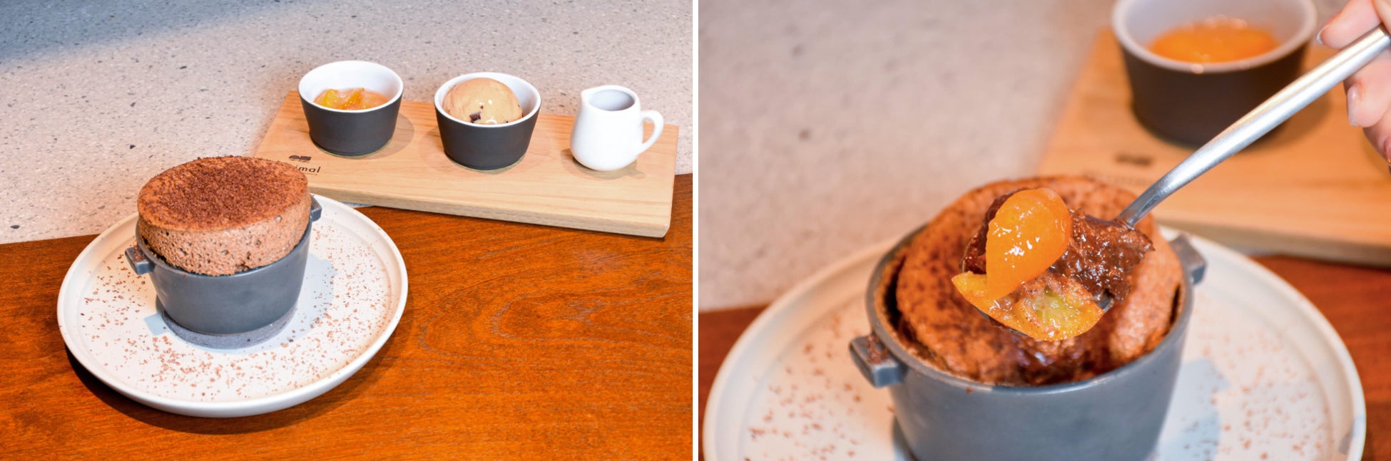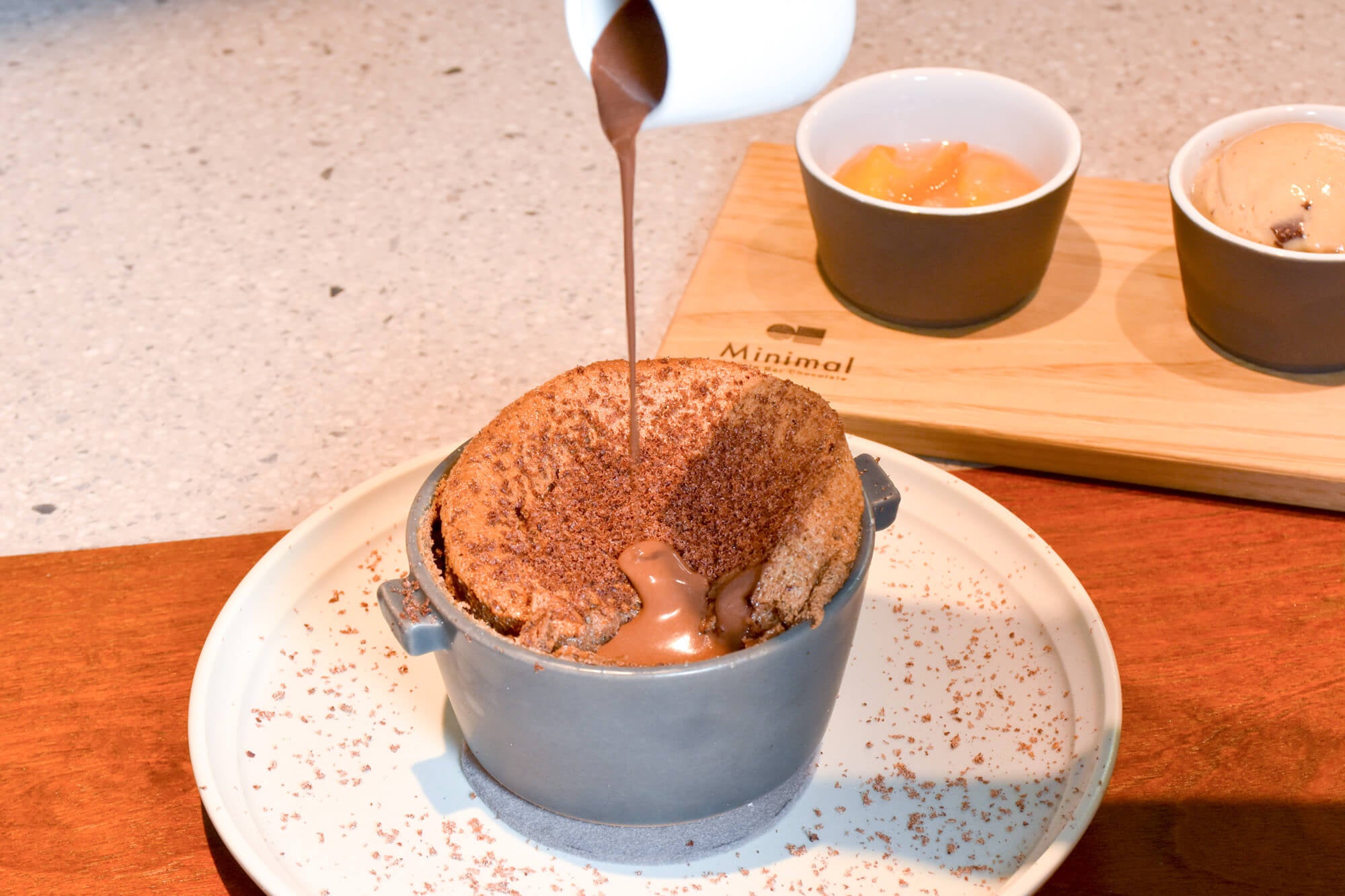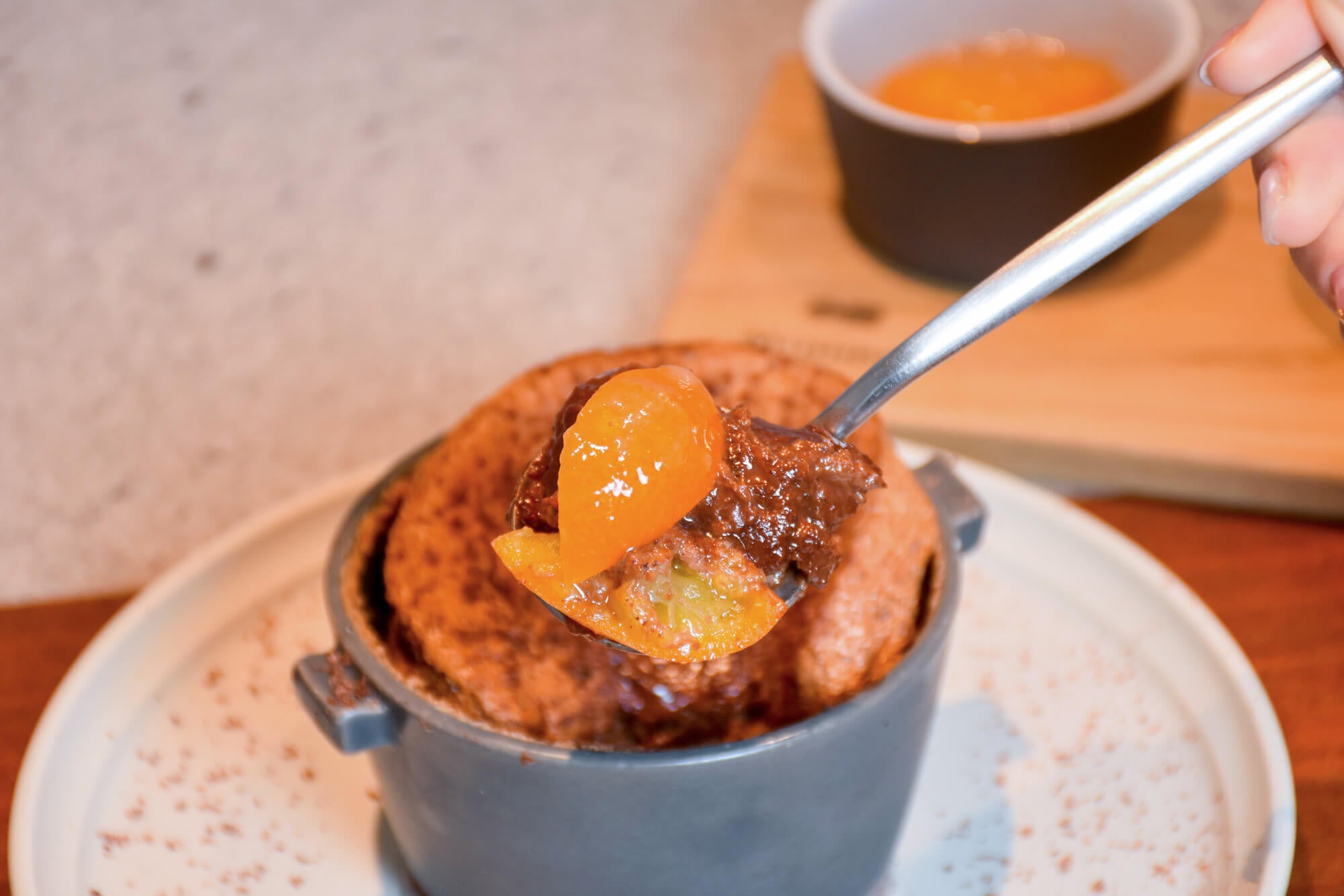 Minimalの「チョコレートスフレ」に冬限定の新レシピ"金柑"が登場。できたてのアツアツで、芳醇な香りのチョコレートを楽しむ期間限定スイーツ。