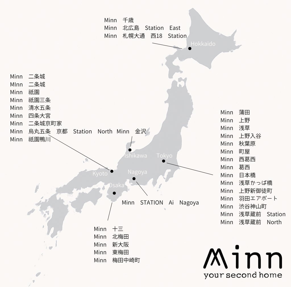 「Minn」は、グループや家族の「みんな」と、宿泊施設を意味する「inn」を掛け合わせた言葉で、大切な家族、友達、恋人と「みんなで一緒に泊まれる」をコンセプトとしたホテルブランドです。キッチン付き25㎡以上のお部屋を中心に、まるで家にいるような寛ぎの空間を提供しています。観光だけでなく、ビジネスでの長期滞在、ホームパーティ、女子会など、楽しみ方は無限大です。