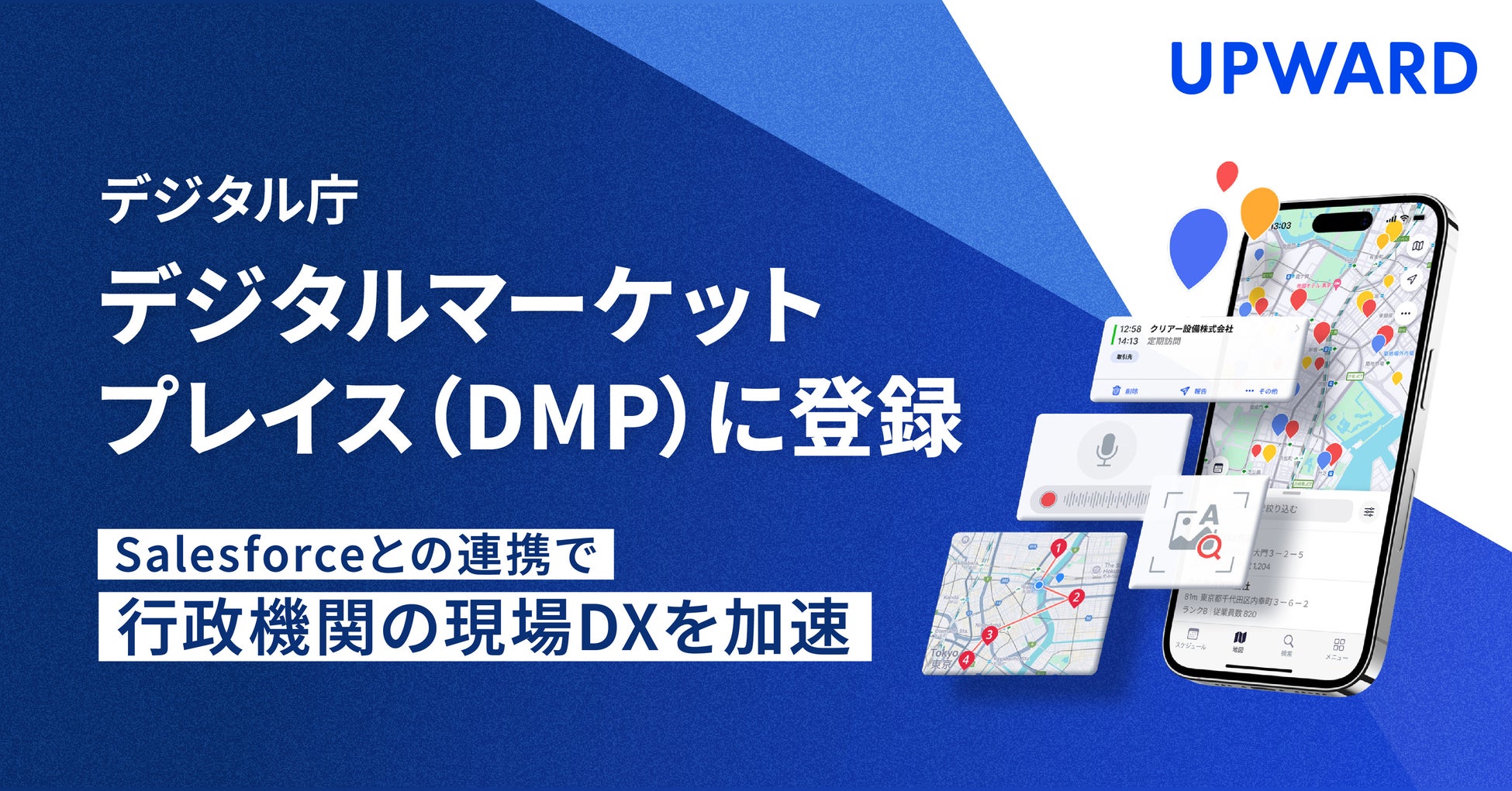 UPWARD株式会社(本社:東京都千代田区、代表取締役 CEO:金木 竜介、以下 UPWARD)は、フィールドセールス向けモバイルAIエージェントの「UPWARD」が、デジタル庁が運営する行政機関向けクラウドソフトウエア(SaaS)調達プラットフォーム「デジタルマーケットプレイス(DMP)」に、登録されたことをお知らせします。