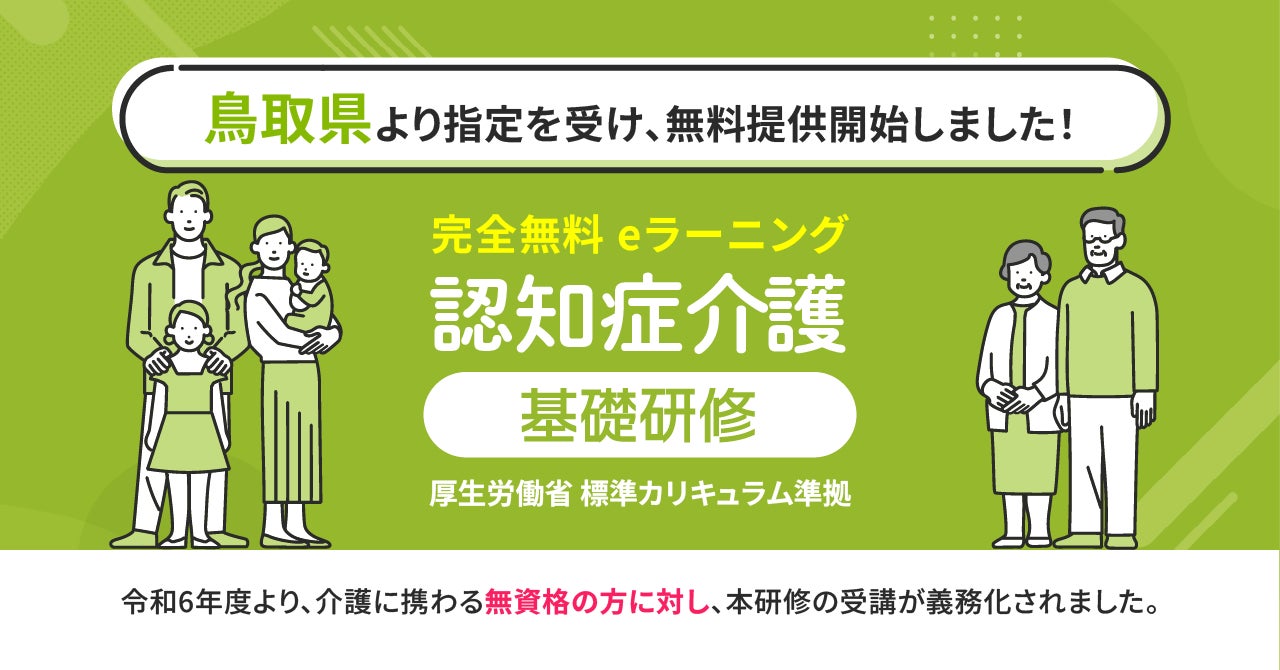認知症介護基礎研修 鳥取県より指定を受け、無料提供を開始しました。