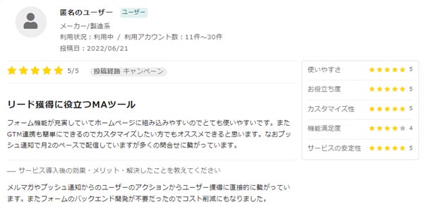 事業内容 : マーケティングオートメーションツールの開発・提供