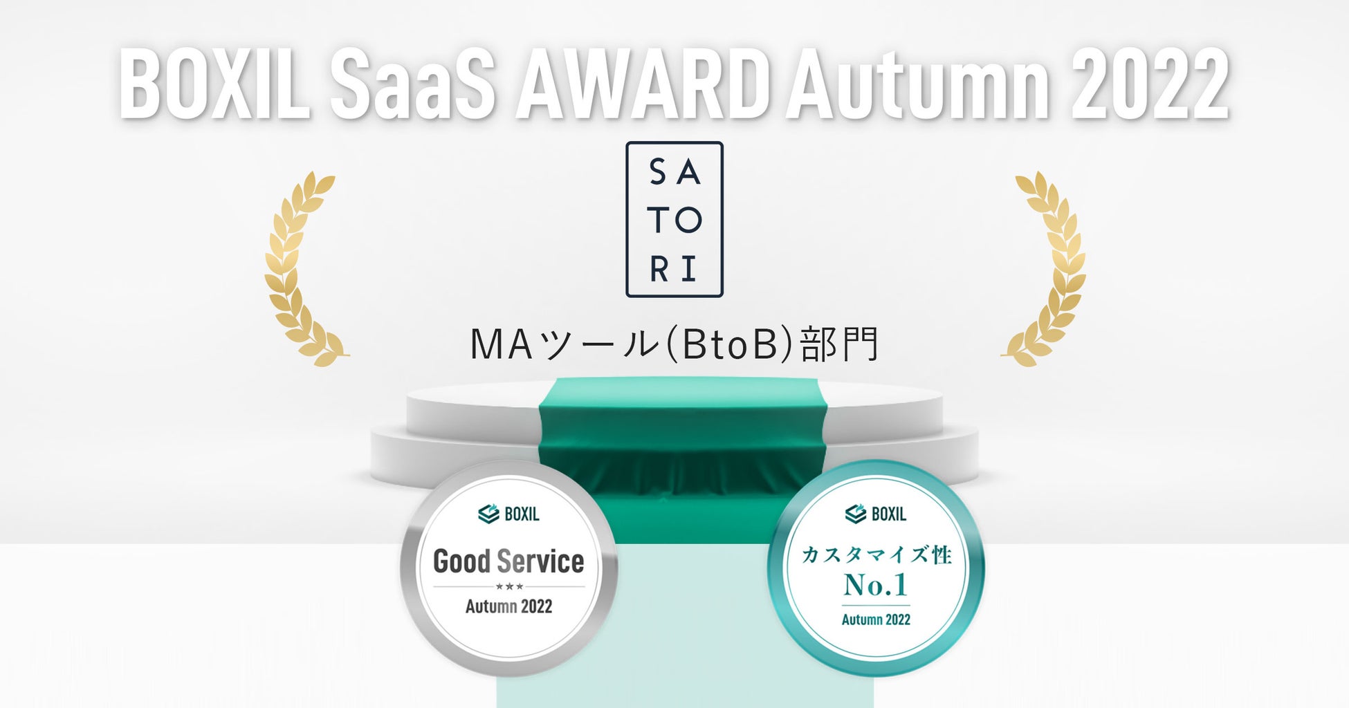 MAツール「SATORI」、「BOXIL SaaS AWARD Autumn 2022」MAツール(BtoB)部門で「Good Service」「カスタマイズ性No.1」に選出