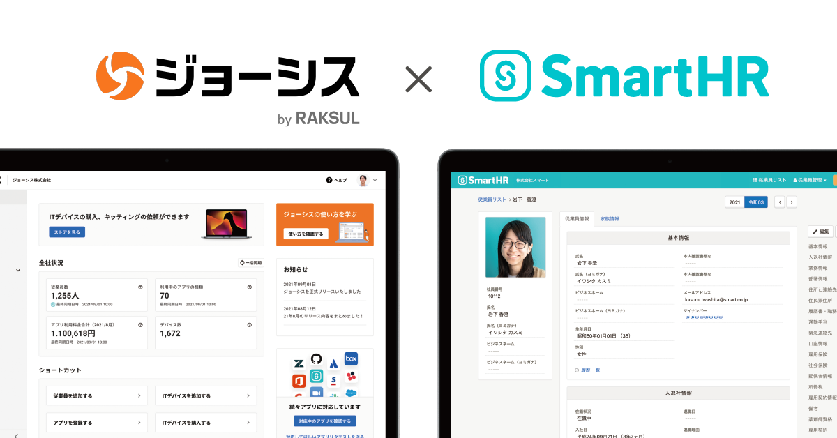 ITデバイス&SaaSの統合管理クラウド「ジョーシス」とクラウド人事労務ソフト「SmartHR」がシステム連携し協業を開始