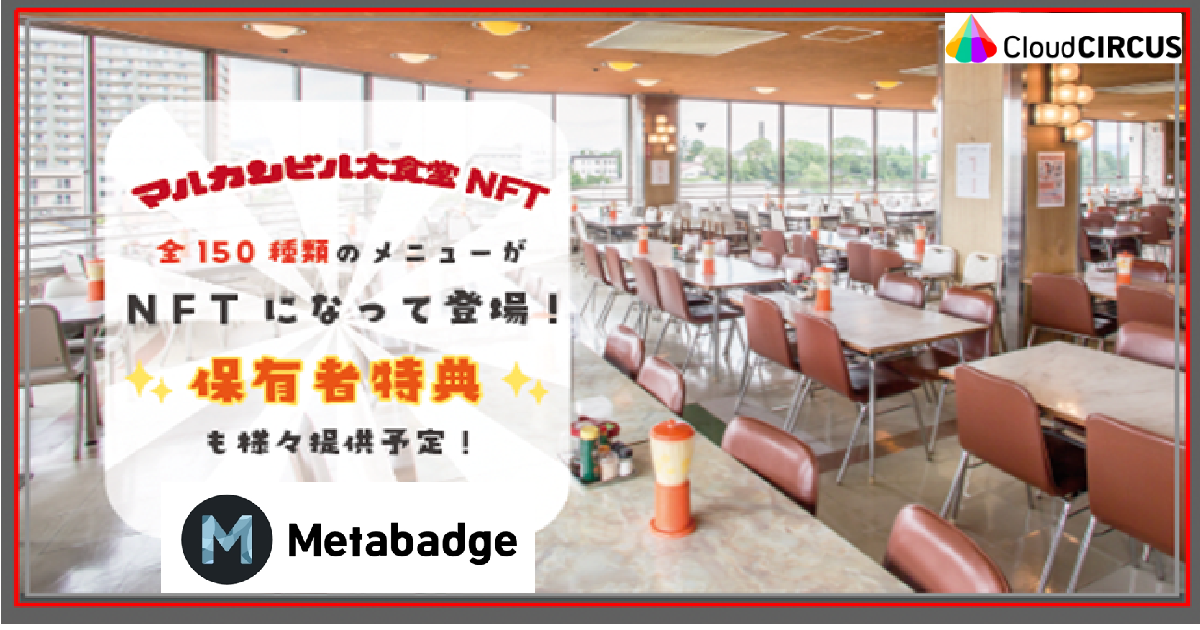 クラウドサーカス株式会社(本社:東京都、代表取締役:北村健一)は、2022年12月26日(月)より、NFT(非代替性トークン)の資産価値をさらに向上させるファンコミュニティサービスの企画制作・コンサルティング『メタバッジ』を、1973年の開業から現在に至るまで多くのファンに愛され続ける「マルカンビル大食堂(岩手県花巻市)」に提供することをお知らせします。