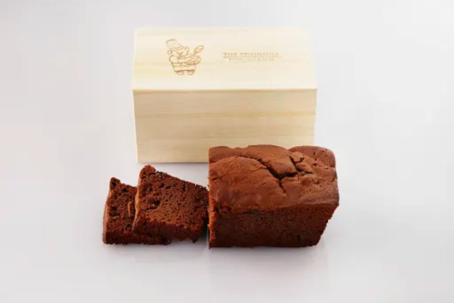 ザ・ペニンシュラホテルズのアンバサダー、「Penベア」が刻印された木箱に入ったパウンドケーキ。バターの代わりにクロテッドクリームをたっぷり練りこんだ濃厚な風味が特徴です。