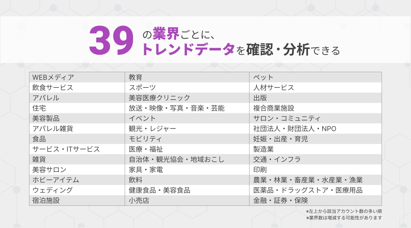 Instagramの業界別の傾向データを簡単に確認・分析できる「業界トレンドデータ」全プランで無料提供開始!