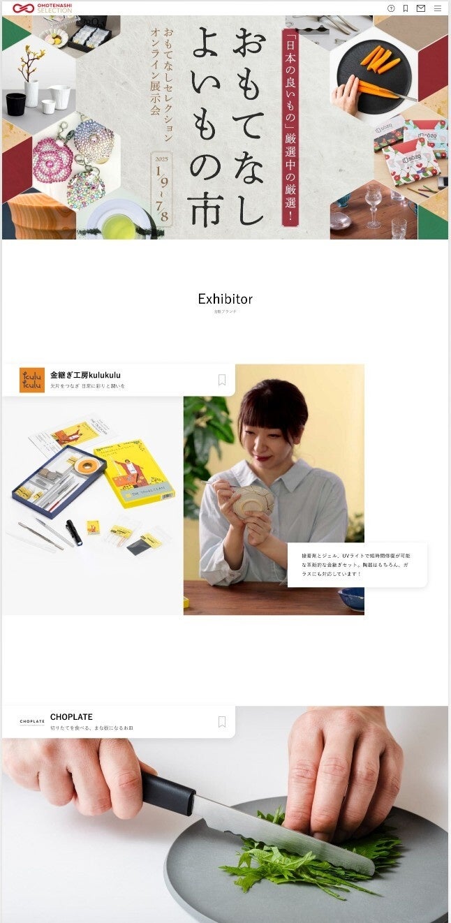 日本の優れた商品・サービスを発掘・認定し、国内外に発信するプログラム「OMOTENASHI Selection(おもてなしセレクション)」は、2025年1月9日(木)〜7月8日(火)の半年間、オンライン展示会「おもてなし よいもの市」を開催します。本展示会は、日本最大級のオンライン展示会サービス「Granstra(グランストラ)」との提携により実現し、「おもてなしセレクション」の受賞事業者11ブランドが日本全国からオンラインの展示会会場に集結します。