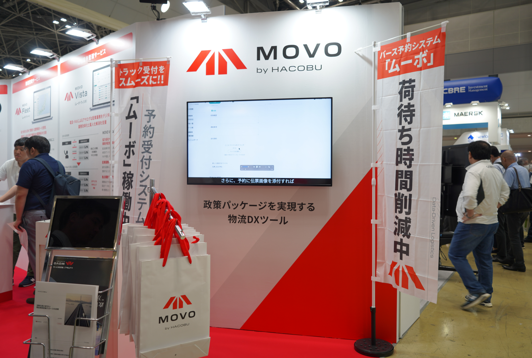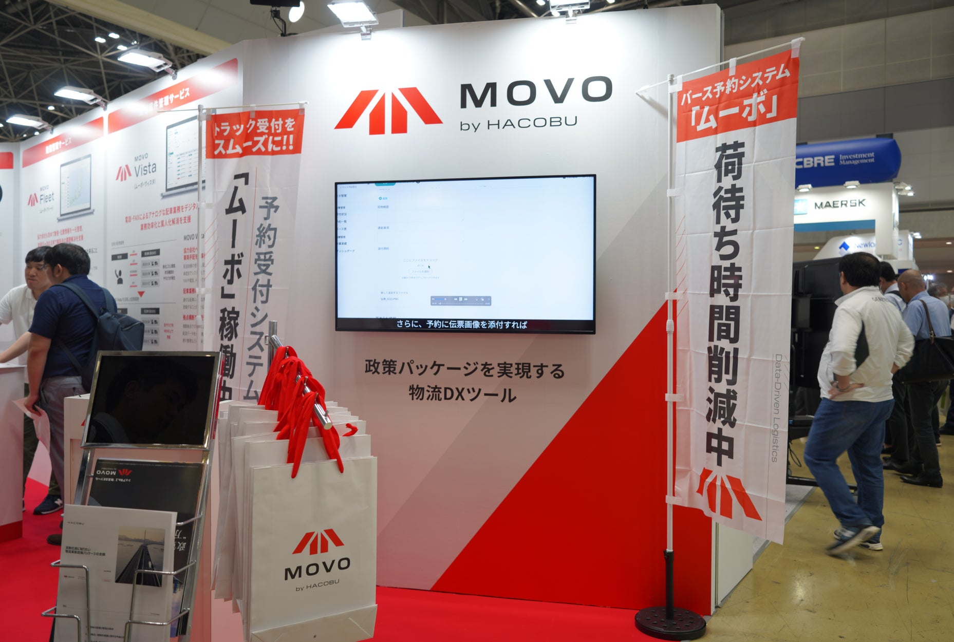 今回Hacobuは、2023年6月2日に公表された「物流革新に向けた政策パッケージ」、及び、経済産業省、農林水産省、国土交通省の連名による「物流の適正化・生産性向上に向けた荷主事業者・物流事業者の取組に関するガイドライン」を取り上げ、「政策パッケージを実現する物流DXツール MOVO」をテーマに出展しました。
