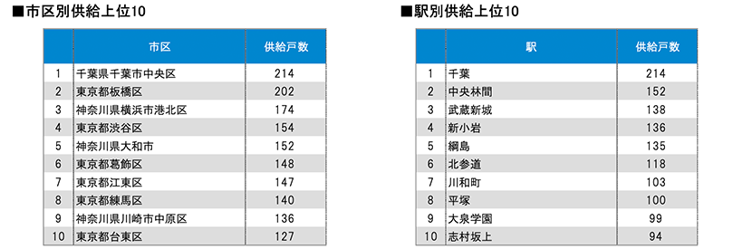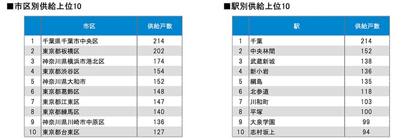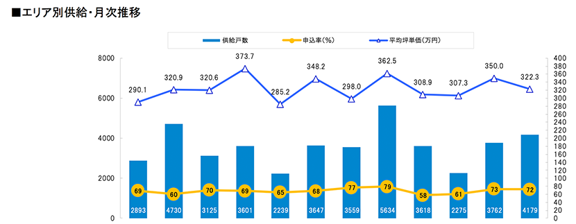 着工件数等を集計しました。また、前年同月における比較や市区別、駅別の供給ランキング等も算出しました。