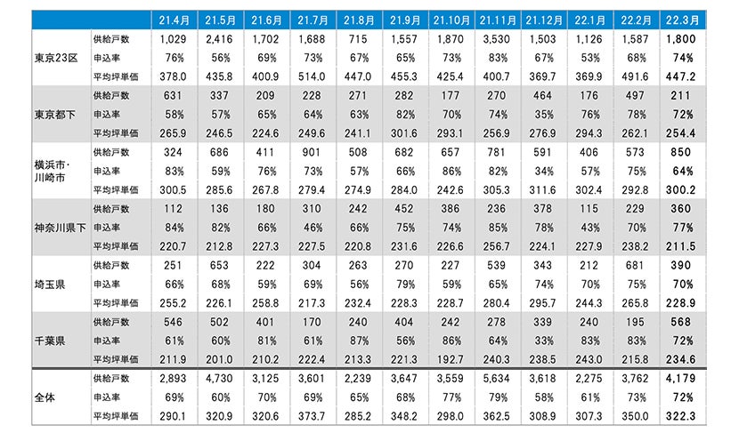 不動産ビッグデータとAI等のテクノロジーを活用し、不動産情報プラットフォームを提供する株式会社マーキュリーリアルテックイノベーター(本社:東京都新宿区 代表取締役:陣 隆浩)は、独自調査による新築分譲マンションの動向を発表致します。今月は、2022年3月度分譲実績データです。