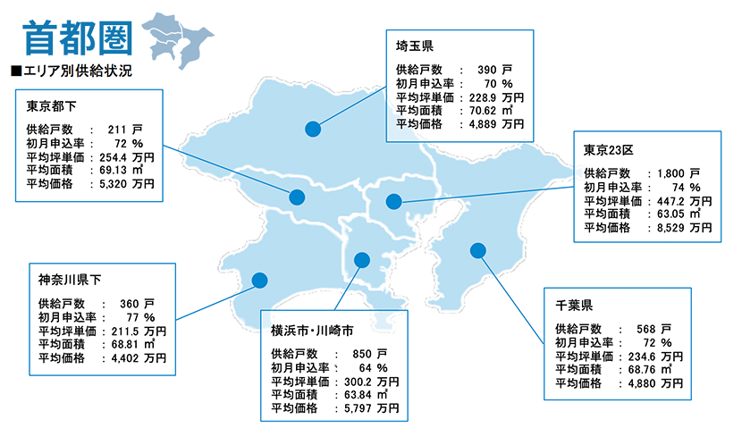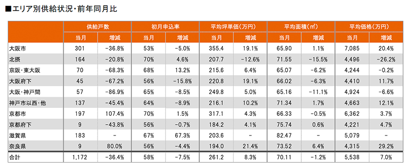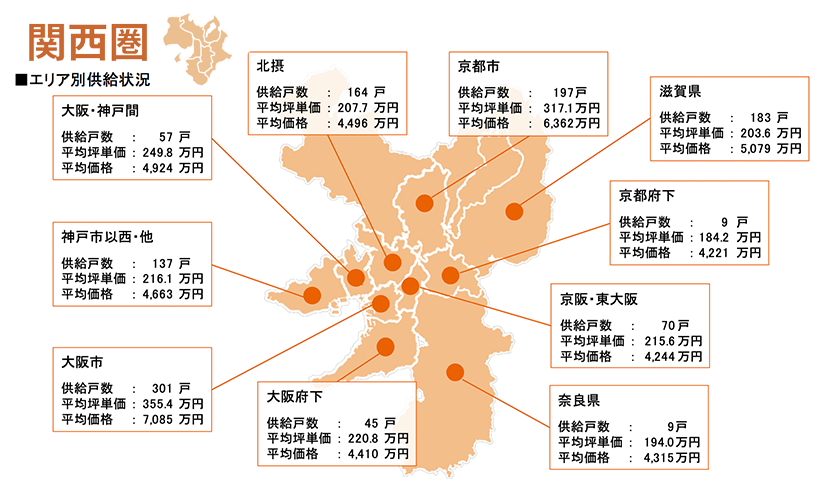 集計対象エリアは首都圏及び関西圏となっており、それぞれのエリア別相場情報、需給動向、