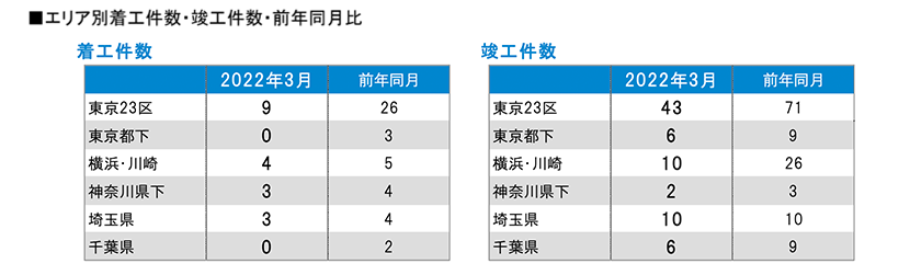 月例新築マンション動向発表~供給戸数が一都三県で14%減 関西圏で36.5%減(2022年3月度 分譲実績)|2022年6月号~