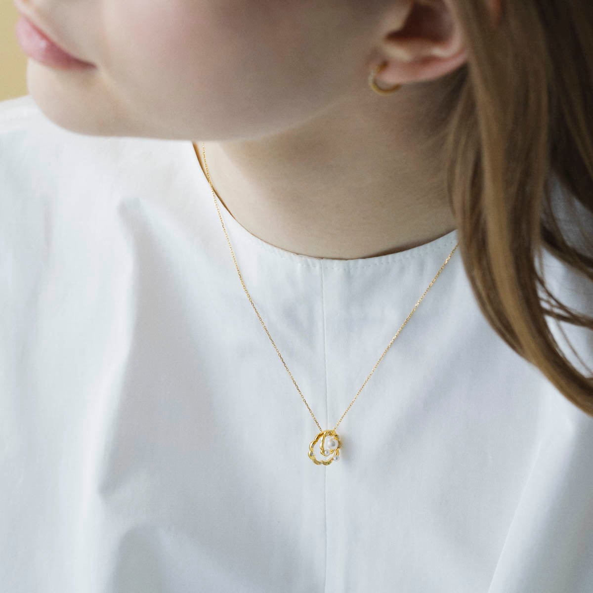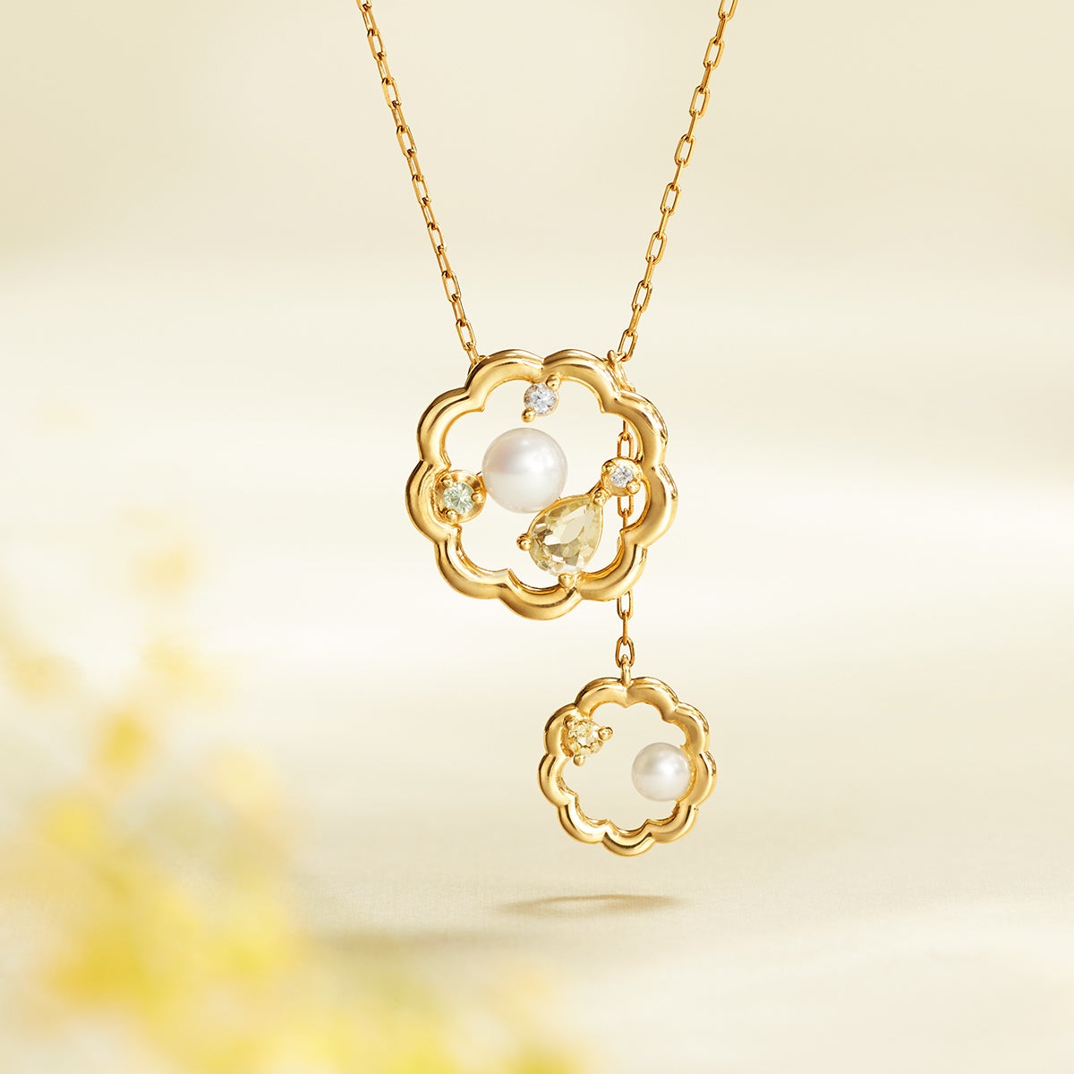 鮮やかに春を告げる花、ミモザをモチーフとしたふっくらとした質感に、淡水パールと天然石のペリドットやレモンクォーツ、トパーズを添えたネックレスは、一本で顔回りを華やかに演出。パーツは取り外し可能なので気分や装いに合わせて4WAYで楽しむことができます。ミモザのピアスはアシンメトリーなストーンのセッティングがアクセントになるフープデザイン。ブーケをイメージしたリングは、エレガントな曲線で指元を優しく包み込みます。