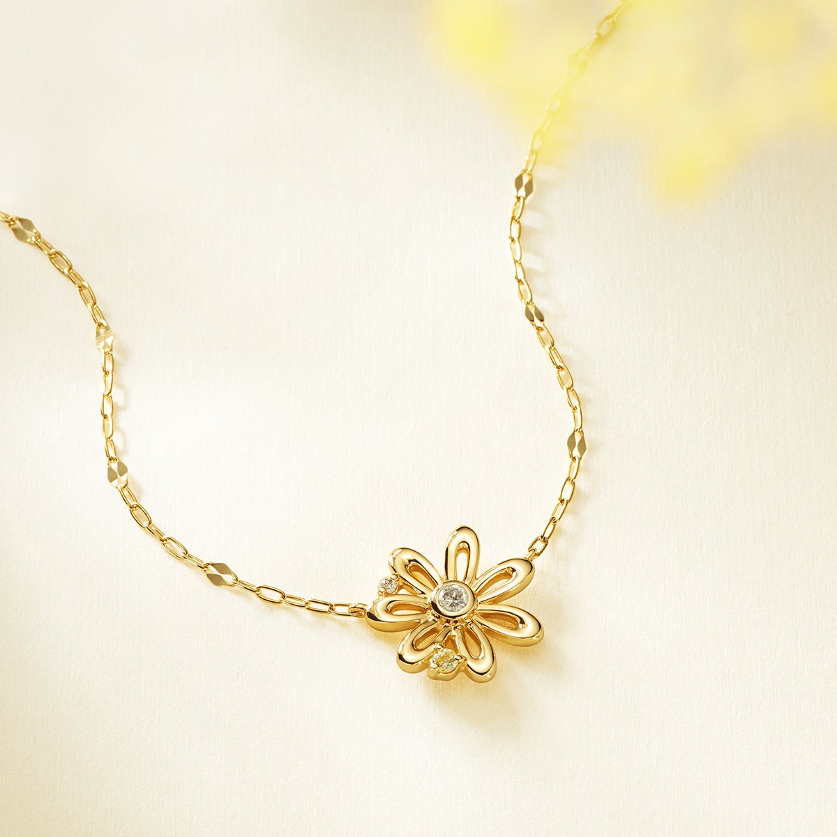デイジーの花言葉は「希望」と「平和」。あたたかく希望に満ちた春にぴったりなジュエリーです。あえて一部分の花びらをなくすデザインや、すっきりと甘さを抑えたシルエットにより、大人の女性にこそ身に着けていただきたい“大人のデイジー”に。