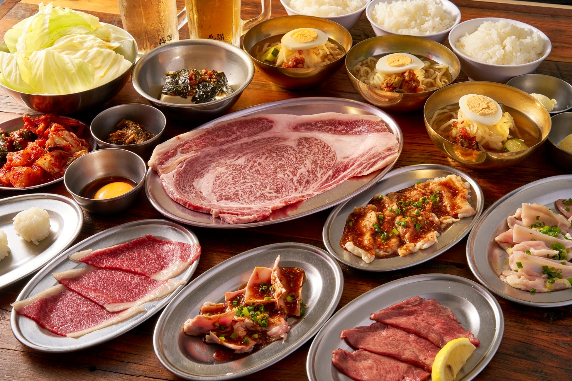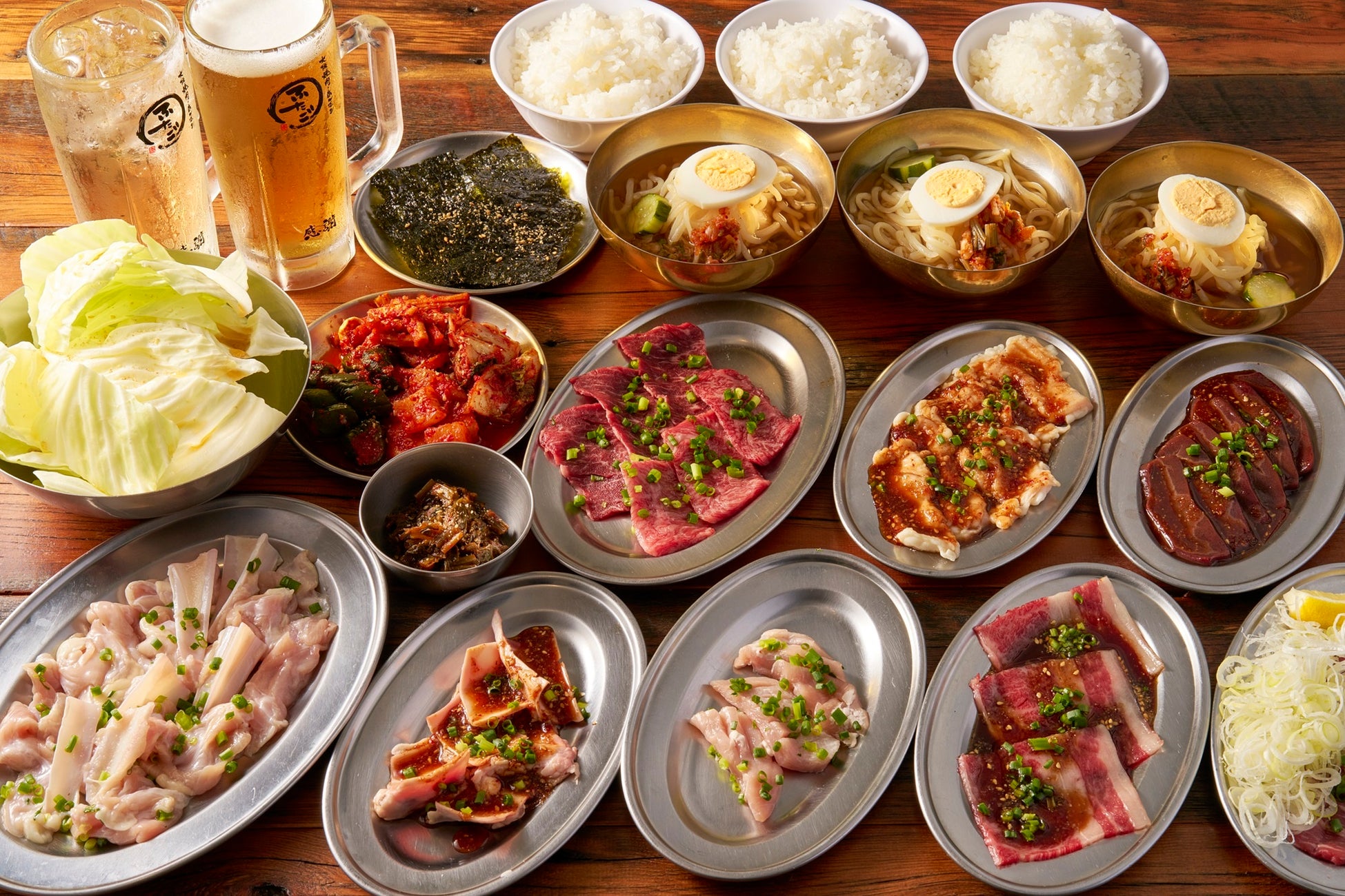 内容:半殺しキムチ/ごま塩キャベツ/韓国のり/キムチ盛り合わせ/ねぎ筋焼き/やめられないミノ/脂付ヤゲン塩/黒毛和牛カルビ/ハラミ/焼きしゃぶカルビ/新鮮レバー/コリコリ焼き/ホルモン/ライス/こだわりの一口冷麺