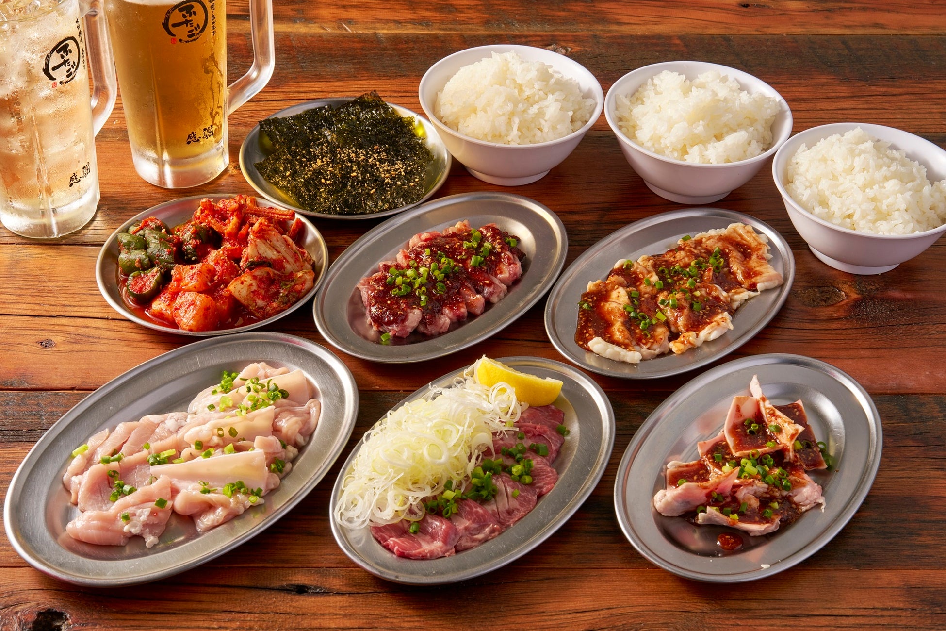 内容:キムチ盛り合わせ/韓国のり/ねぎ筋焼き/やめられないミノ/脂付ヤゲン塩/やみつきカルビ/コリコリ焼き/ホルモン/ライス