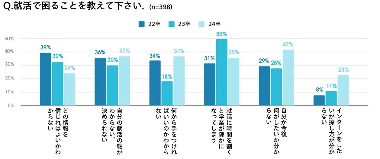 ・22卒で最も多かった就活の悩みは「どの情報を信じればよいかわからない(39%)」
