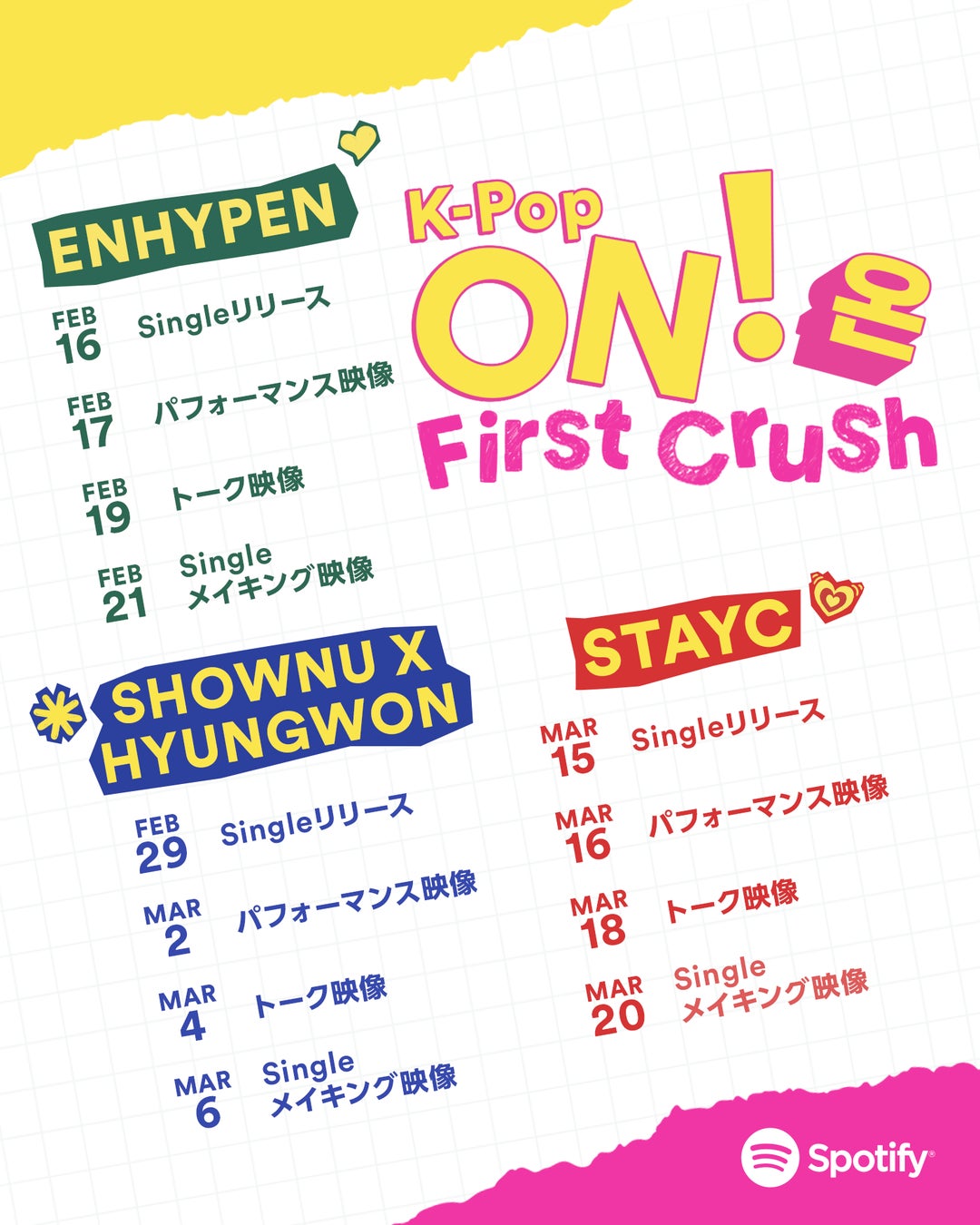 「Spotifyの『K-Pop ON! (온) First Crushキャンペーン』は、K-Popを世界に広げ、アーティストをファンや新しいリスナーに繋ぐことに対する私たちのコミットメントを再確認するだけでなく、K-POPが人々の生活に触れ、ポジティブな影響を与え、国境や言語を超えてリスナーを結びつけていることを示す機会にもなっています。ENHYPEN、SHOWNU X HYUNGWON、そしてSTAYCと協力して、初の『Spotify K-Pop ON! (온) Singles』を世界に届け、K-POPに対する愛を祝福することができ、本当に嬉しく思っています」