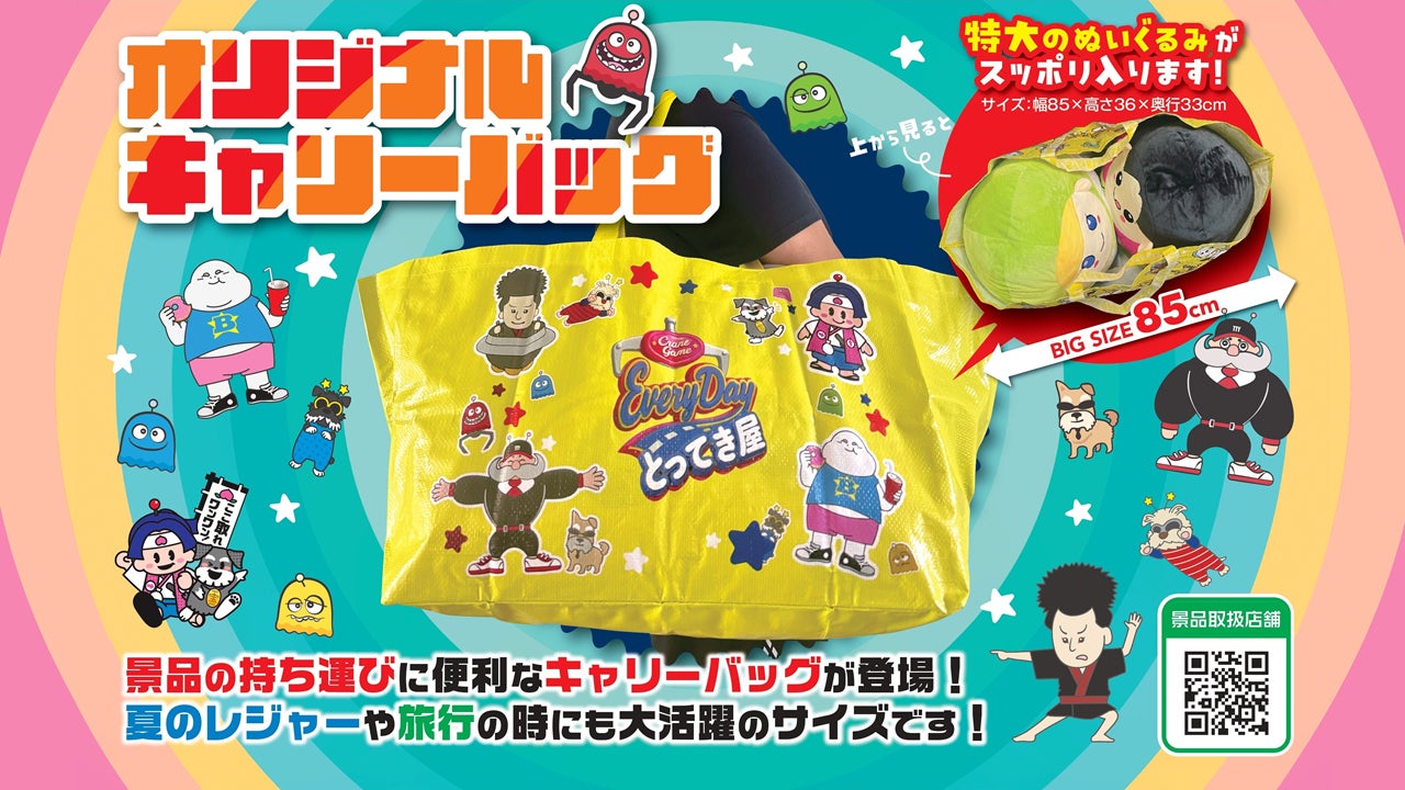 今回プレゼントする「エブリデイ オリジナルキャリーバッグ」は、クレーンゲームファンの声をもとにデザインされたエブリデイ限定トートバッグです。