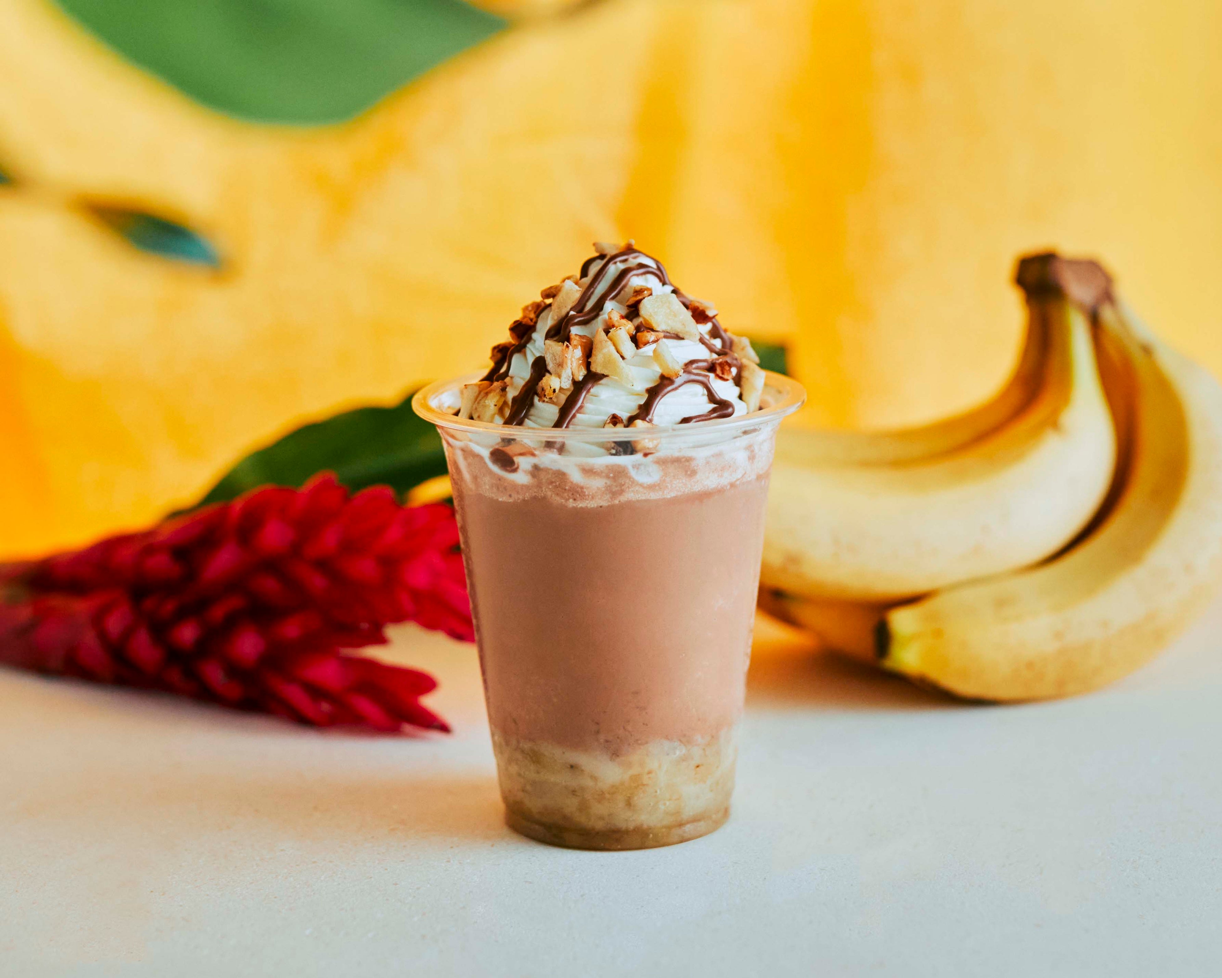 コロンビア産の香り豊かで滑らかなクーベルチュールを贅沢に使用したフローズンドリンク。下には濃厚なフレッシュバナナのソース、ミルクとビターをブレンドしたチョコレートフローズン、上にはアーモンドミルクの生クリームとチョコソース、ドライバナナチップとキャラメリゼアーモンドをのせました。まるでチョコパフェ!デザートとしてお楽しみ頂ける生チョコドリンクです。