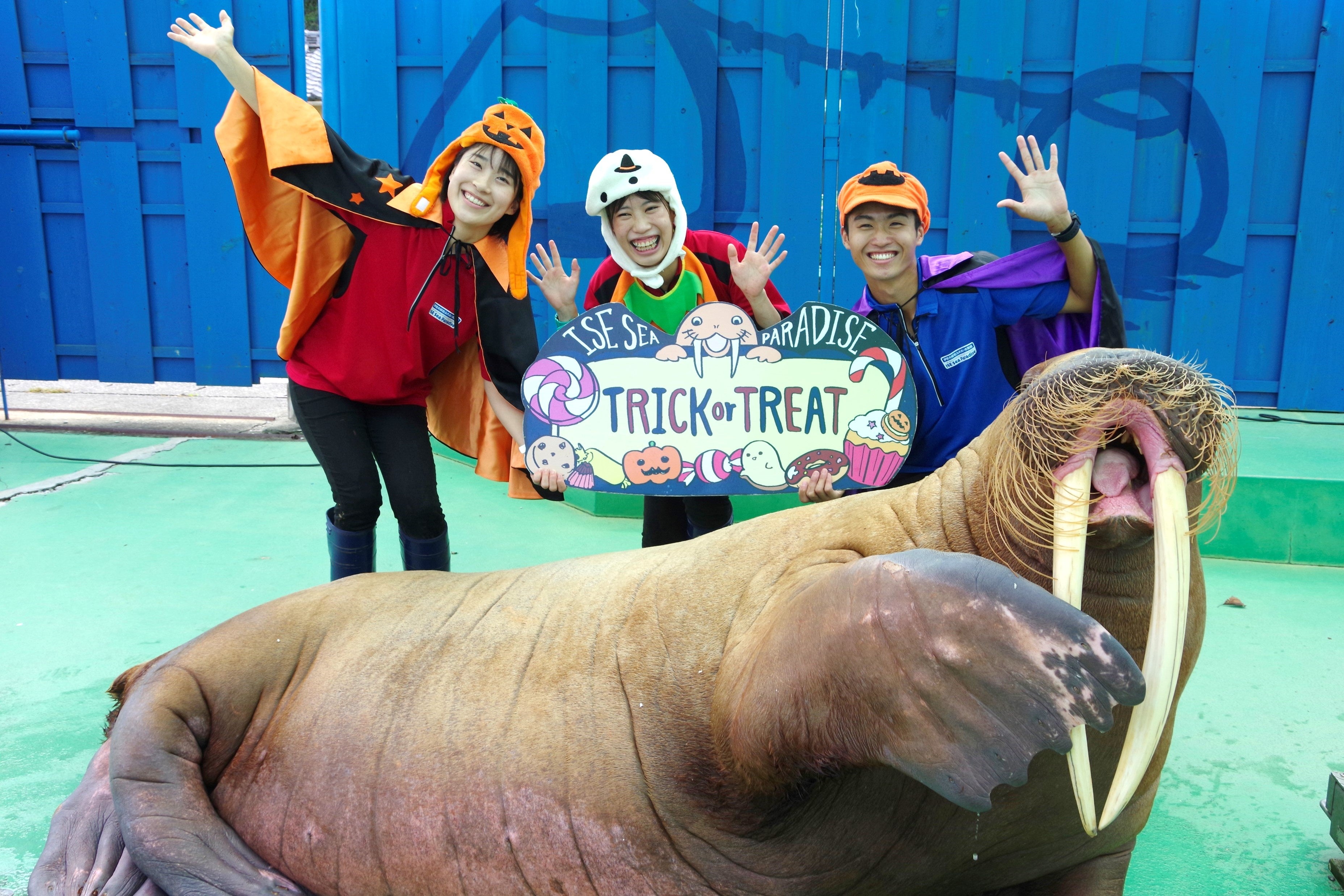2022年9月26日からはセイウチとの記念撮影時に、ハロウィン仕様の手持ちボードをお持ちになってお写真が撮影できます。この機会にハロウィンムードを楽しんでみませんか!