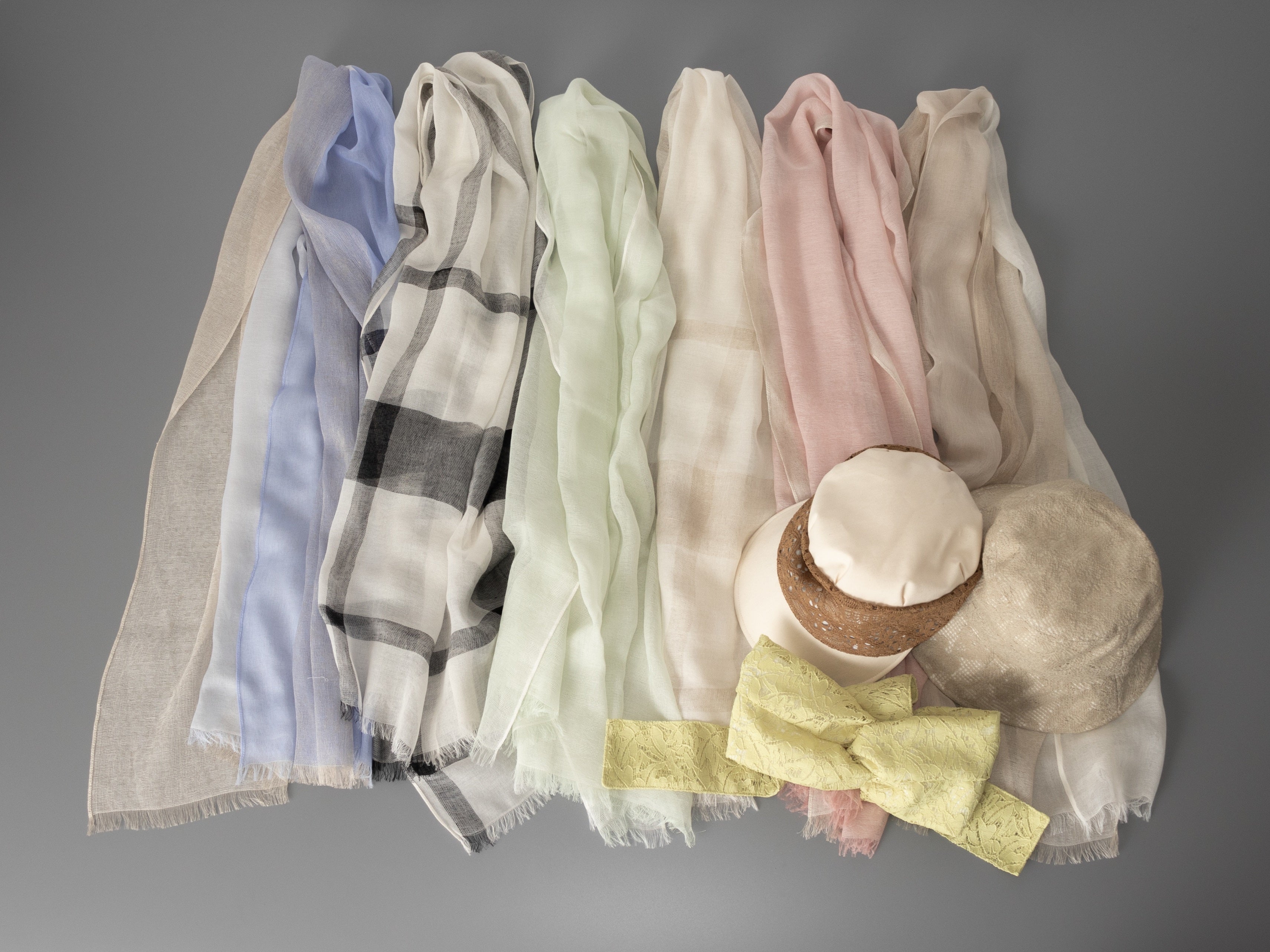 今回展開するのは、婦人向けの帽子・ターバン・ストールです。同じトルコ産のオーガニックコットンを使用していますが、織り方や異素材との組み合わせにて様々な魅力を感じられる商品です。春夏の使用に向けて、遮光素材の採用やUV加工を施し、日焼け対策にも対応しています。