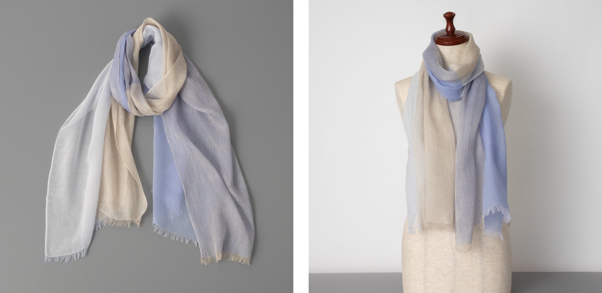 トルコ産のオーガニックコットンとリネンを組み合わせた上品なチェックストールです。尾州の機屋で細く繊細な糸を使用し、ゆっくりと時間を掛けて丁寧に織りあげています。薄くさらっとした質感で、真夏の冷房対策にもおすすめ。UV加工も施しているので、暑い時期のUV対策にもご使用いただけます。