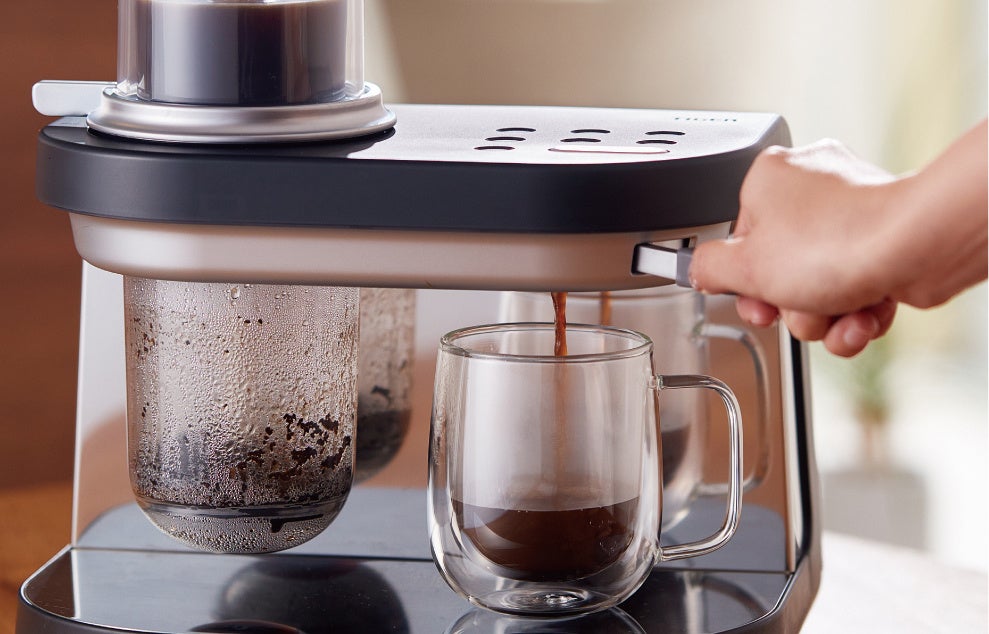 抽出されたコーヒーがまるで噴水のように噴きあがる美しい抽出過程を演出する透明シリンダーを採用。上部シリンダーの空気を抜くことで、上下シリンダーに圧力差を発生させ、コーヒーのろ過と抽出を行います。またシリンダーとパイプの距離は、噴きあがるコーヒーが最も美しく見える距離に調整、魅せる抽出過程にこだわりました。 質感の高い仕上げ、ミニマルかつモダンなプロダクトデザインにより革新的なコーヒーメーカーとしての特別な存在感が、おいしいコーヒーだけでなく、記憶に残る時間をお届けします。